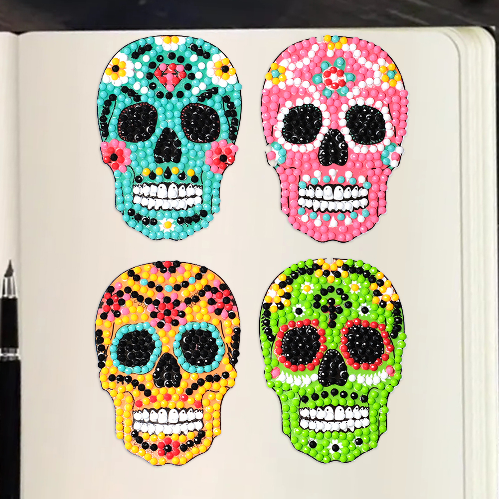 4pcs Diamond Mosaic Sticker DIY Color Skulls Adhesive Art Craft Round Rhinestones Decals for Cup Book Phone Decoration