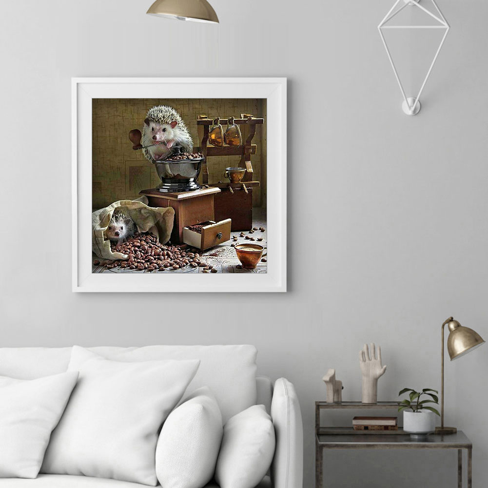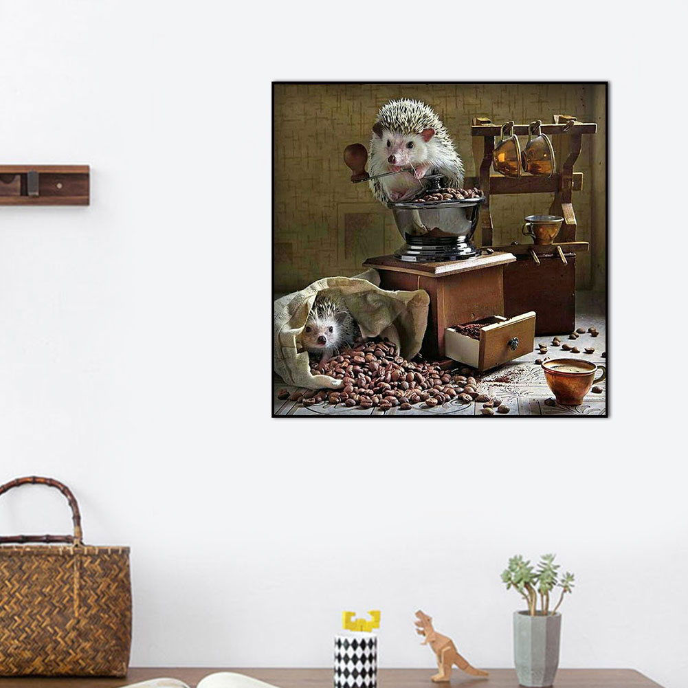 Diamond Painting Kit Hedgehog coffee beans Full Round Rhinestone Wall Pict