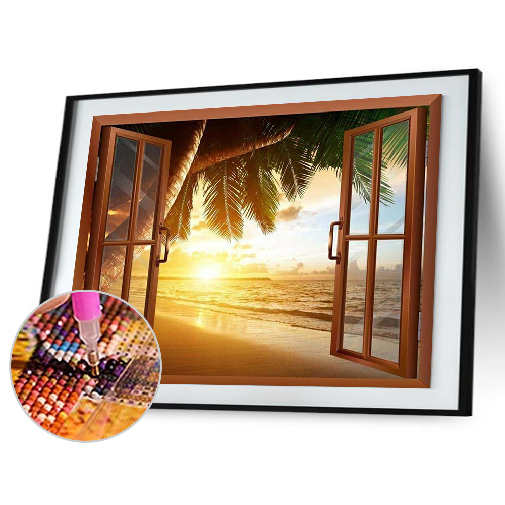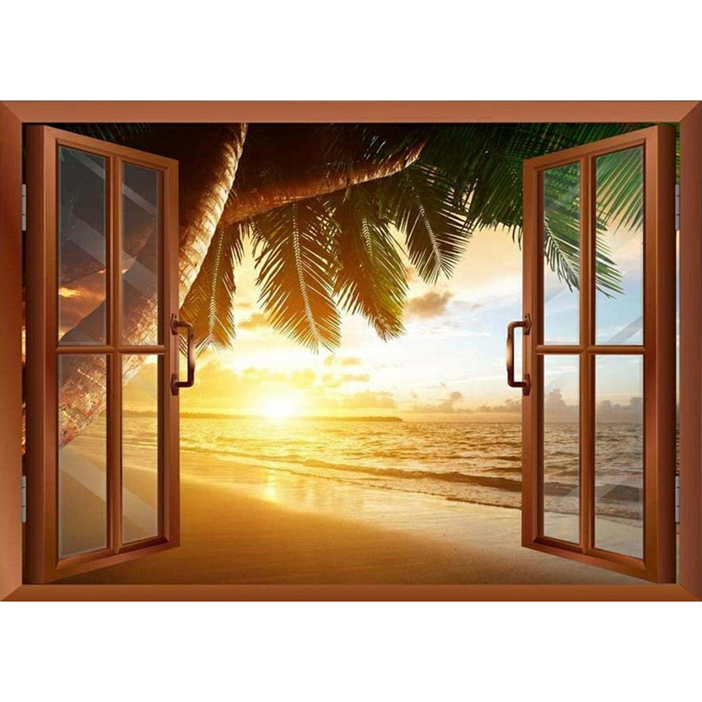 5D DIY Diamond Painting Window View Series Full Round Drill Mosaic Wall Art Picture of Rhinestone Home Decoration