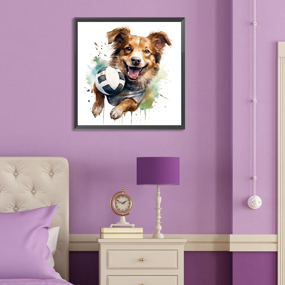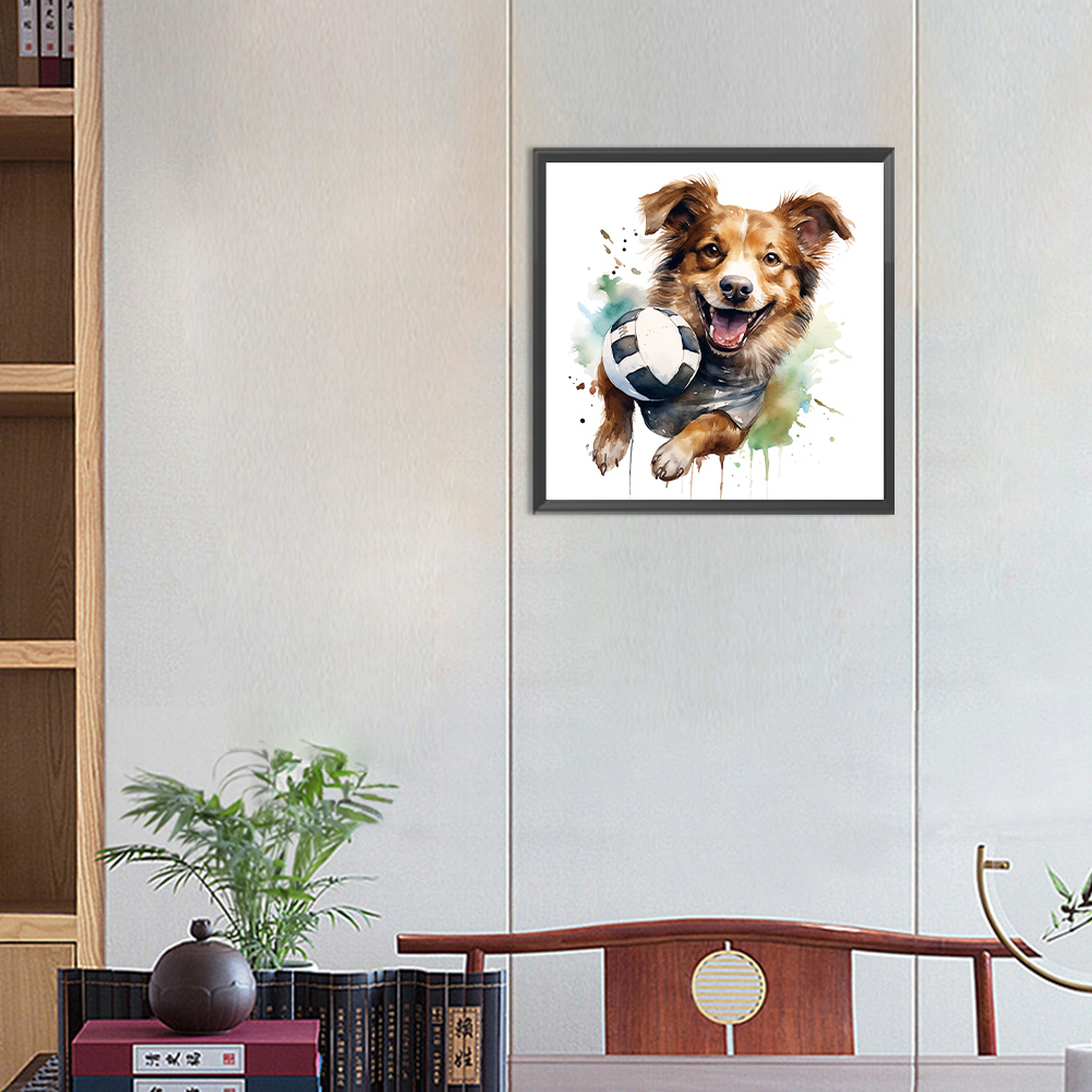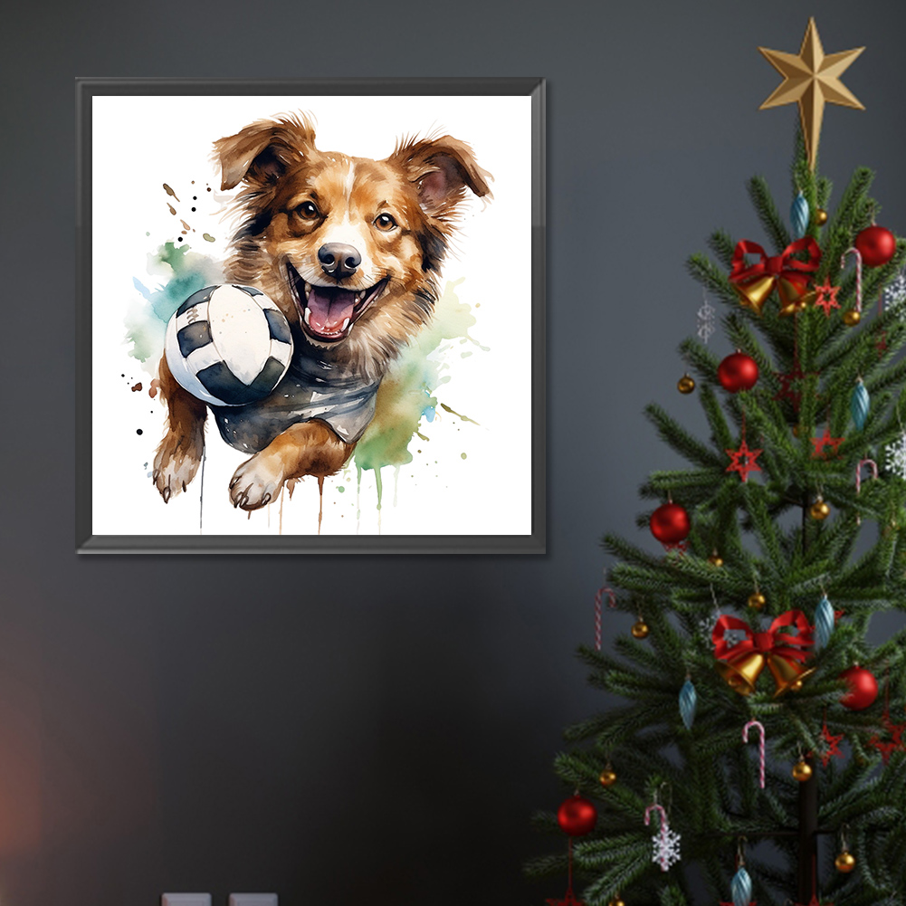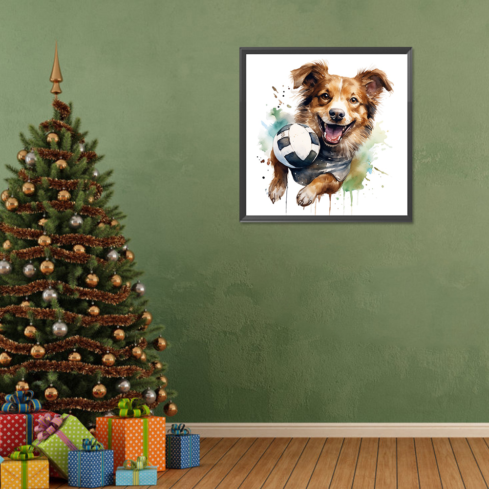 Full Round Diamond Painting 30*30cm - Puppy Playing With Ball