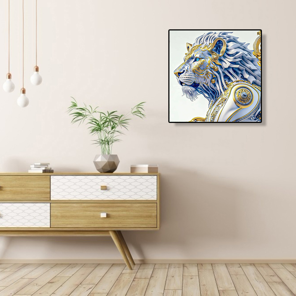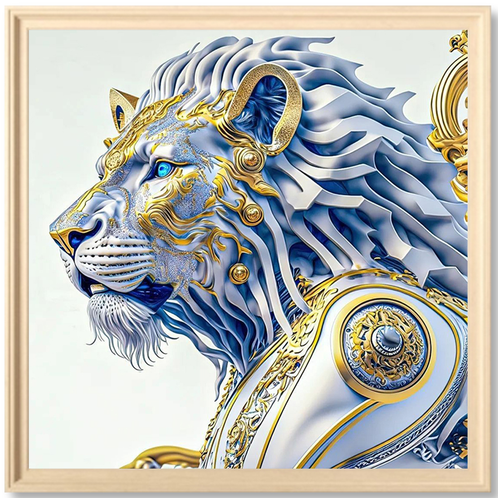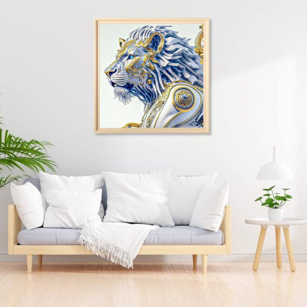 Full Round Diamond Painting 30*30cm - White Lion Handsome Head