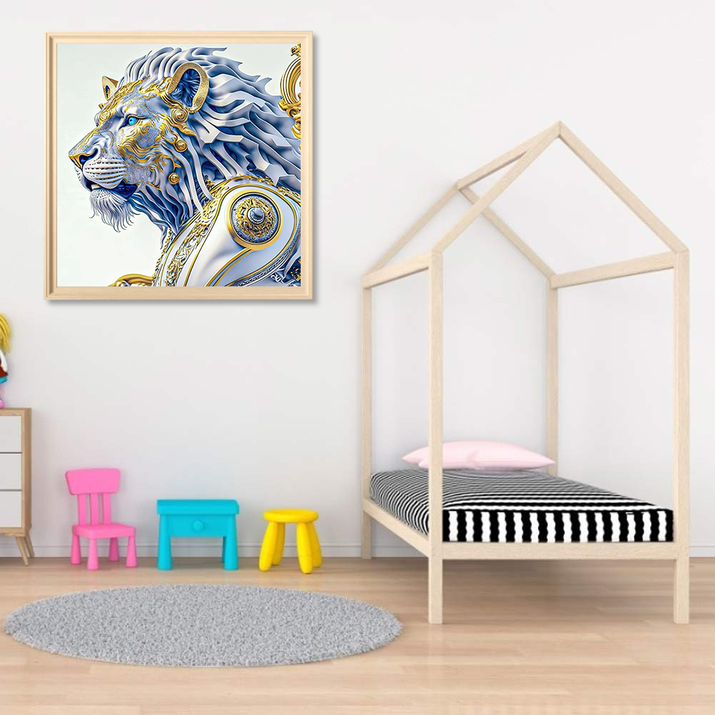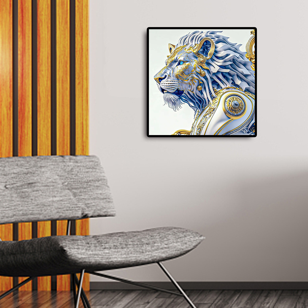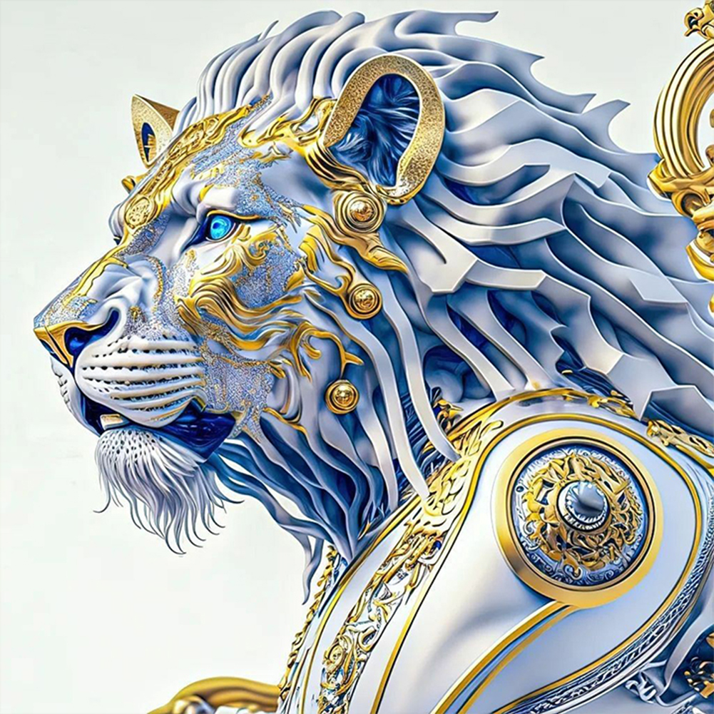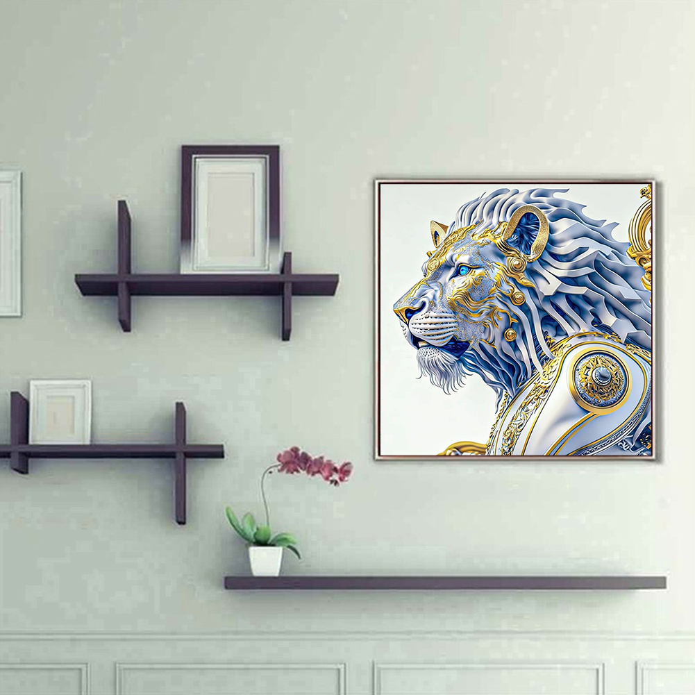 Full Round Diamond Painting 30*30cm - White Lion Handsome Head