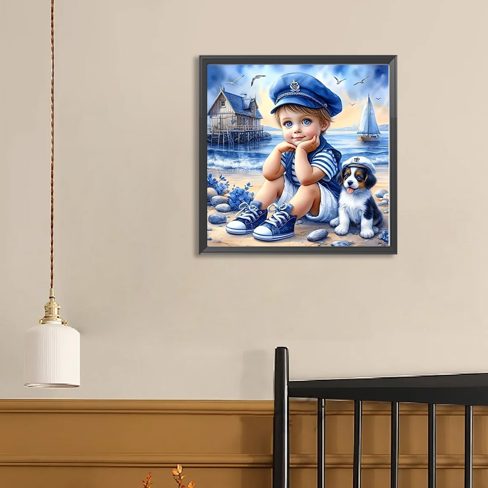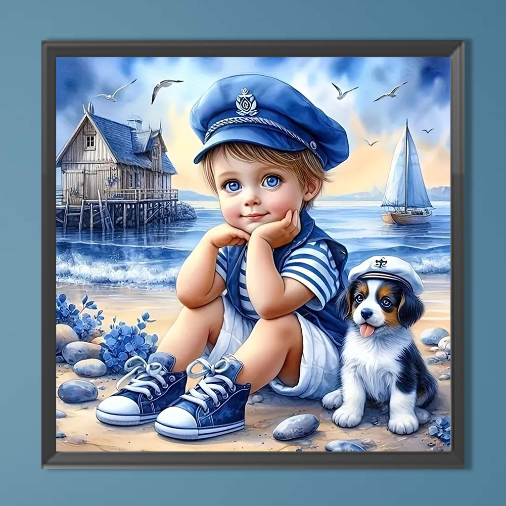 Diamond Painting - Full Round Drill - Blue Boy Dog(Canvas|40*40cm)