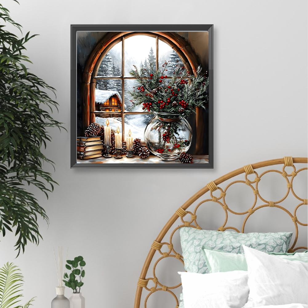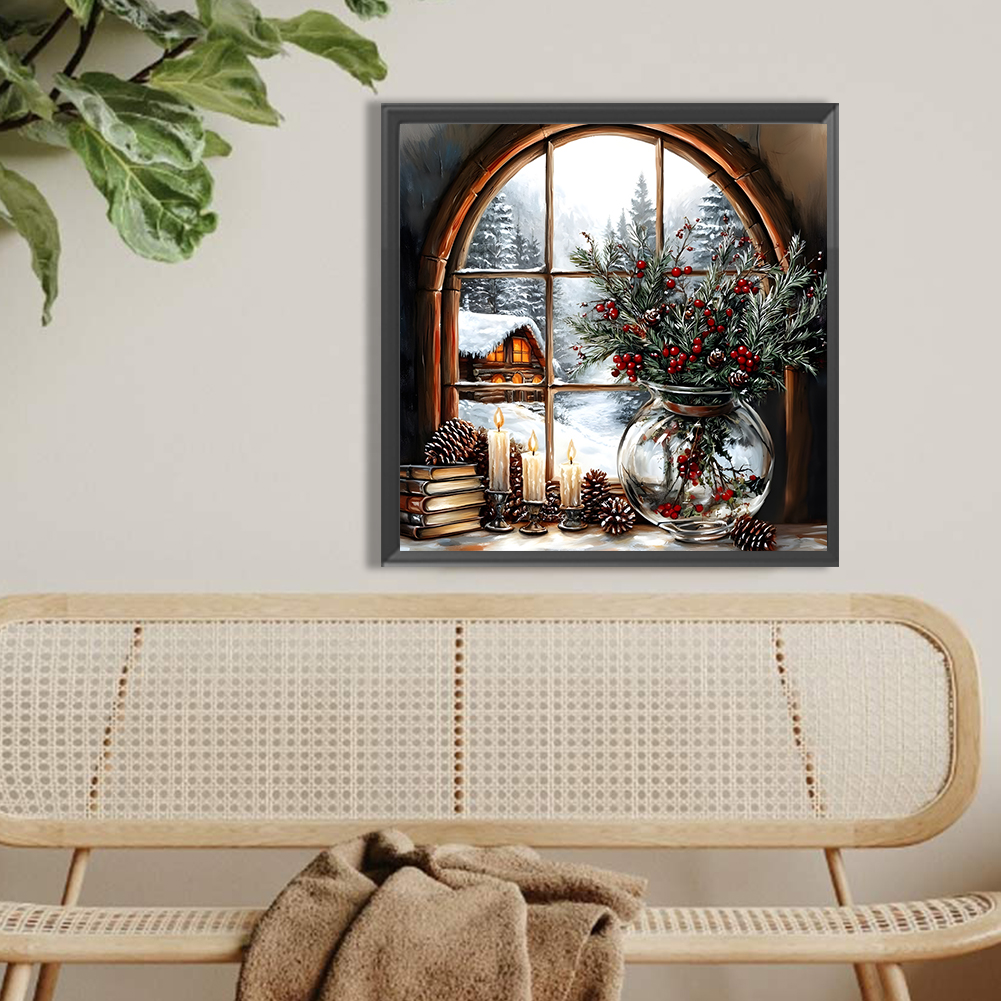 Diamond Painting - Full Round Drill - Xmas Snow View(Canvas|40*40cm)