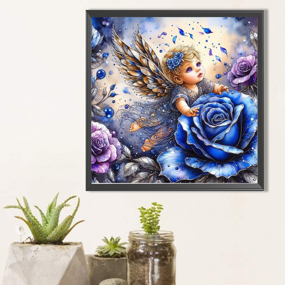 5D DIY Full Round Drill Partial AB Diamond Painting Angel Blue Rose Kit 45x45cm