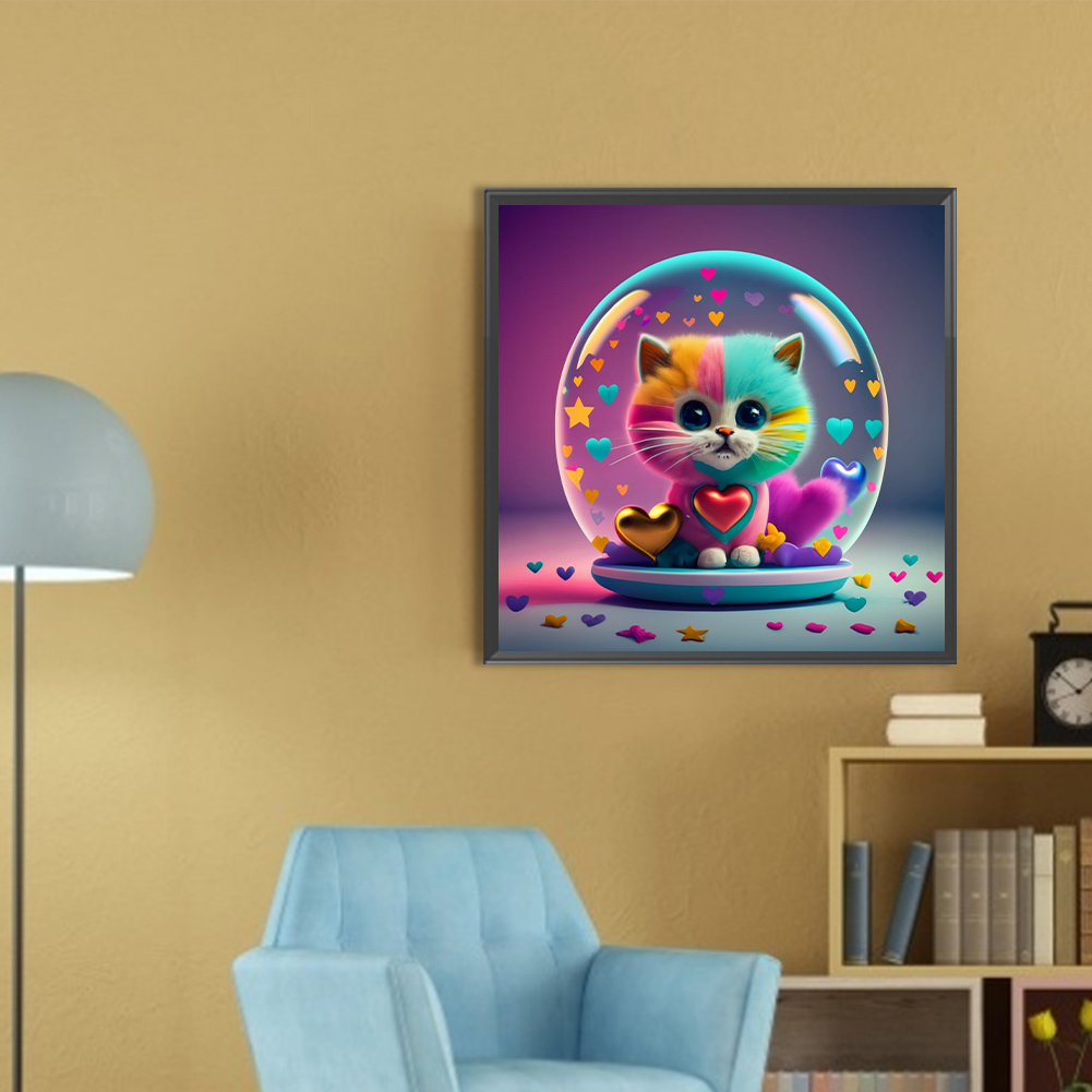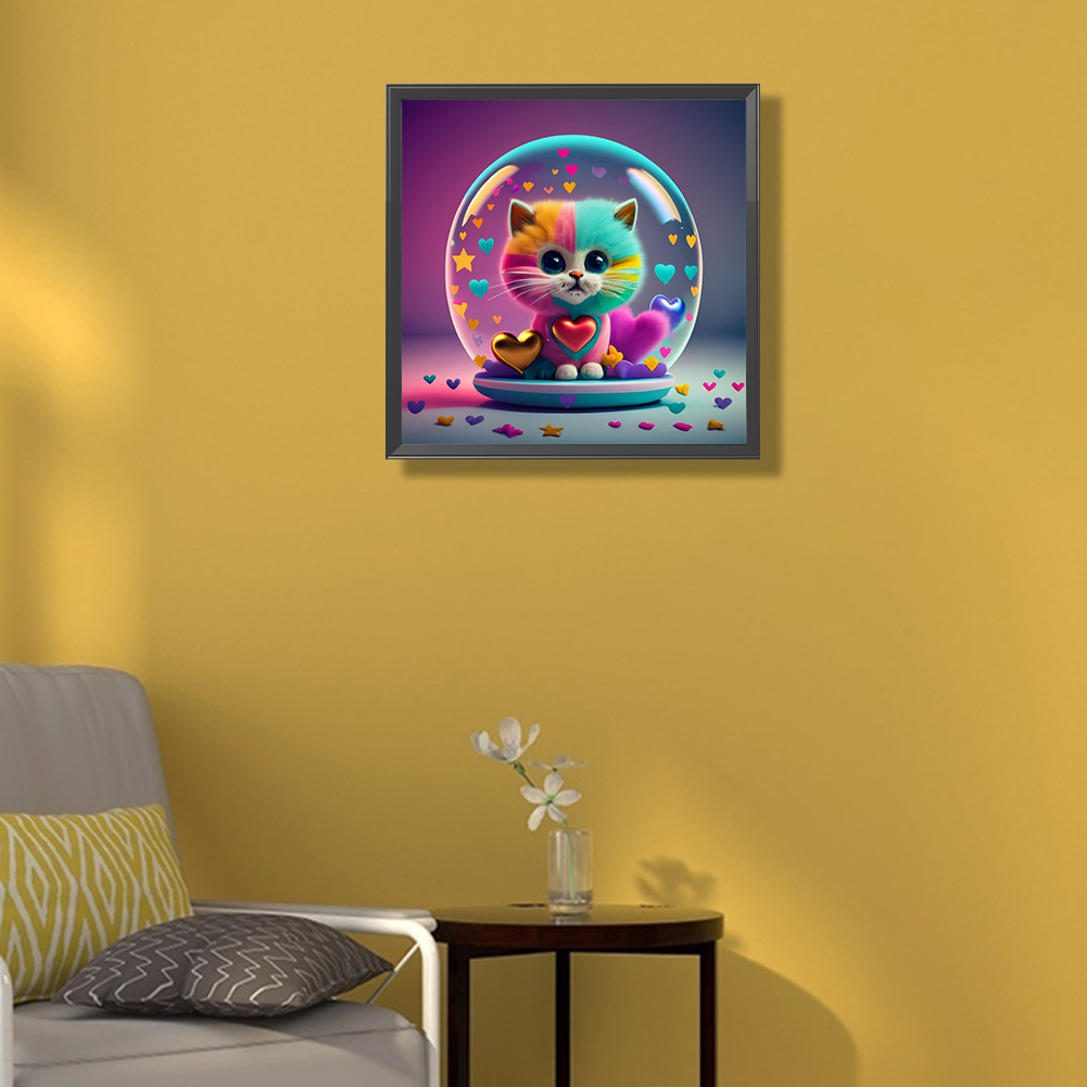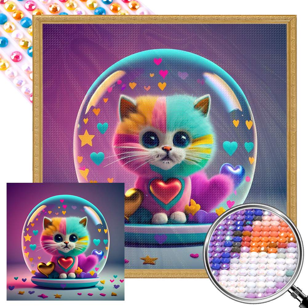 Partial AB Diamond Painting - Full Round Drill - Love Colourful Cat(Canvas|35*35cm)