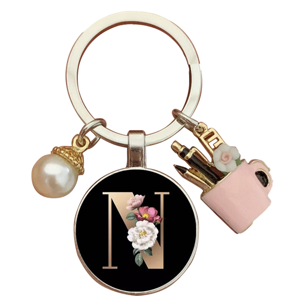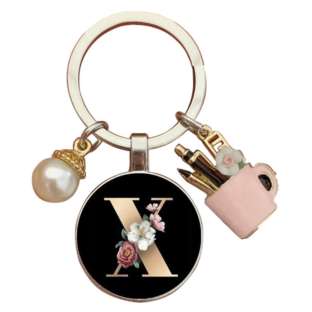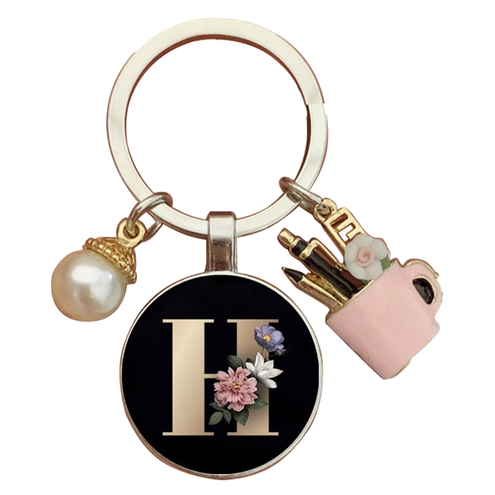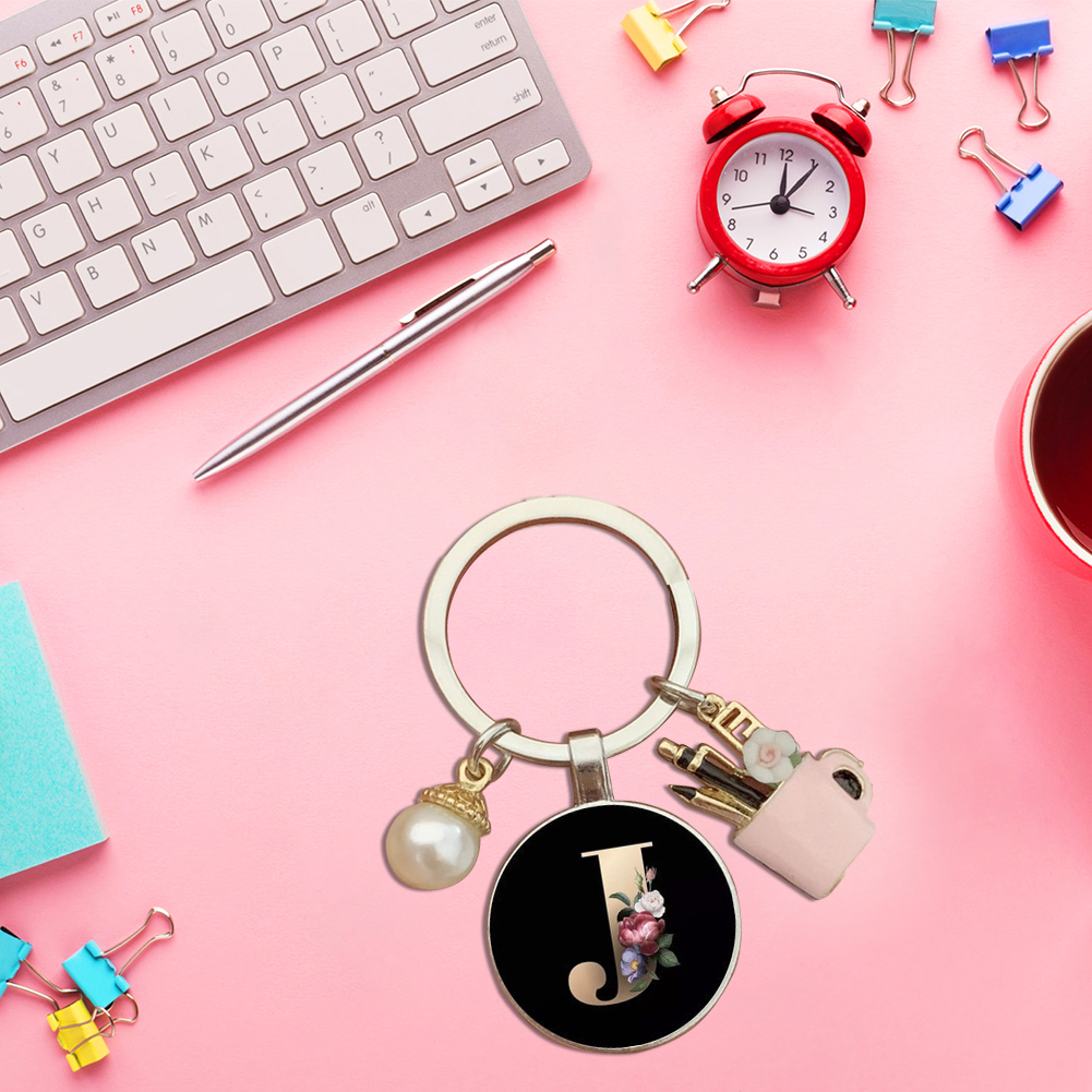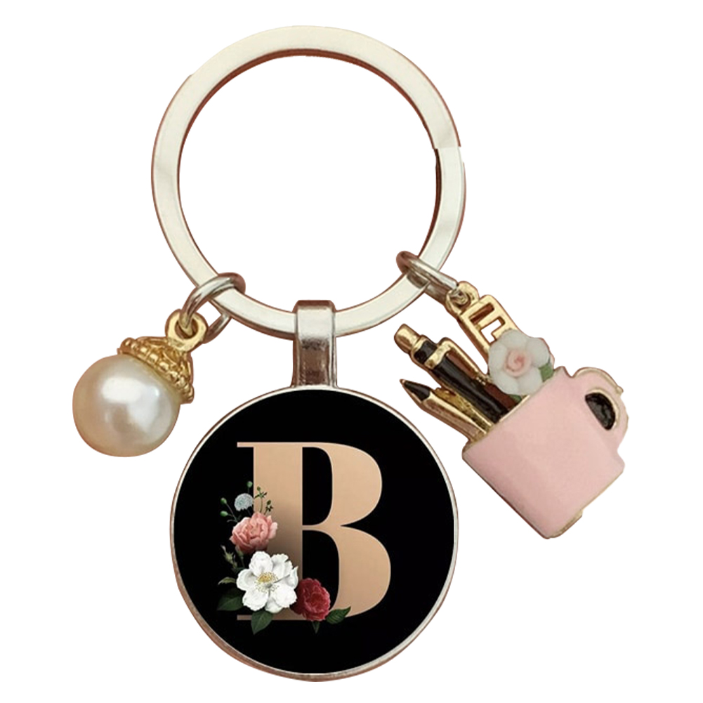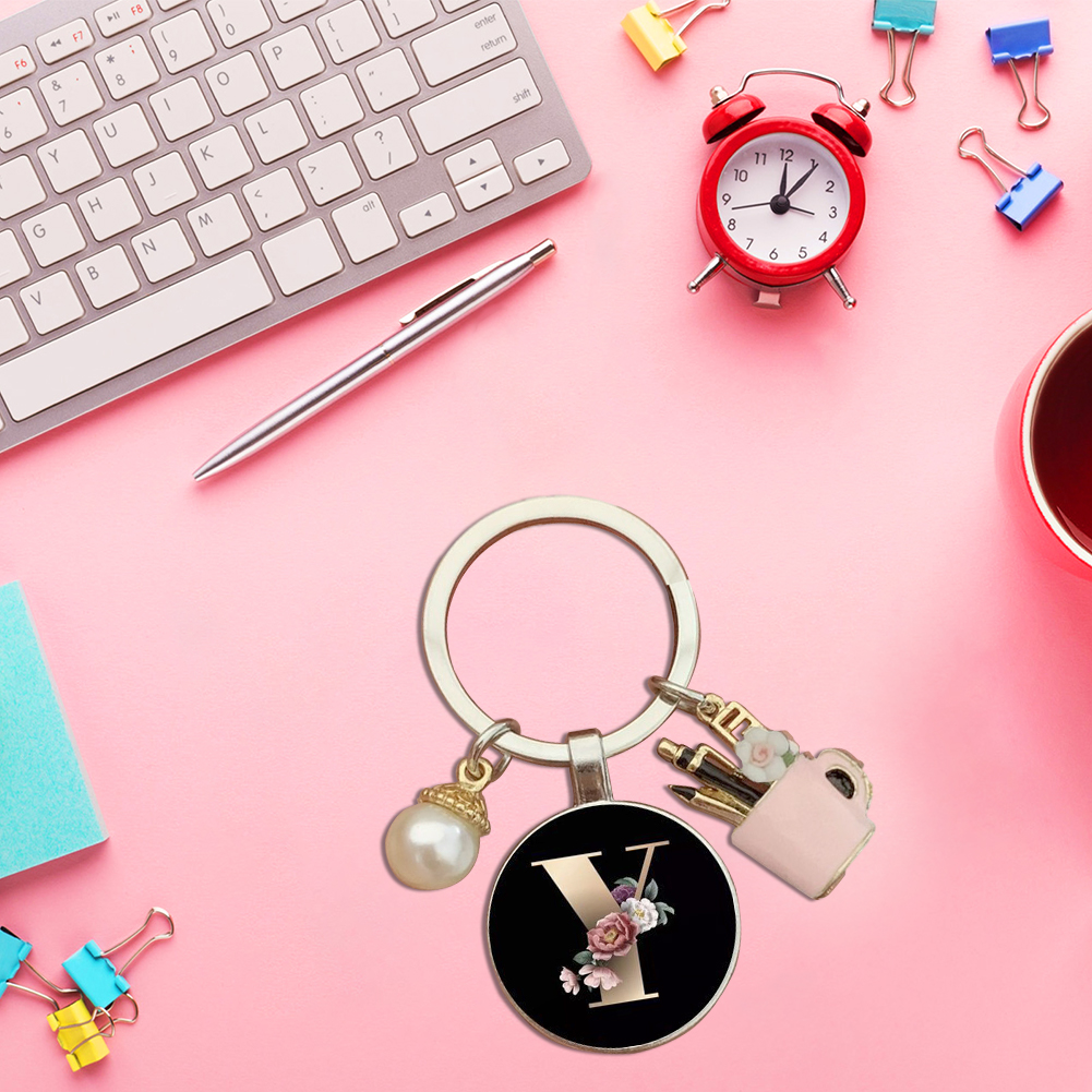 Resin Alphabet Letter Keychain Pearl Alphabet Key Ring Charms for Key Handbag Backpack
