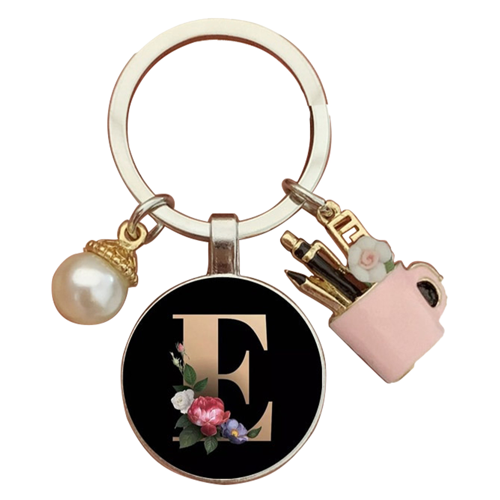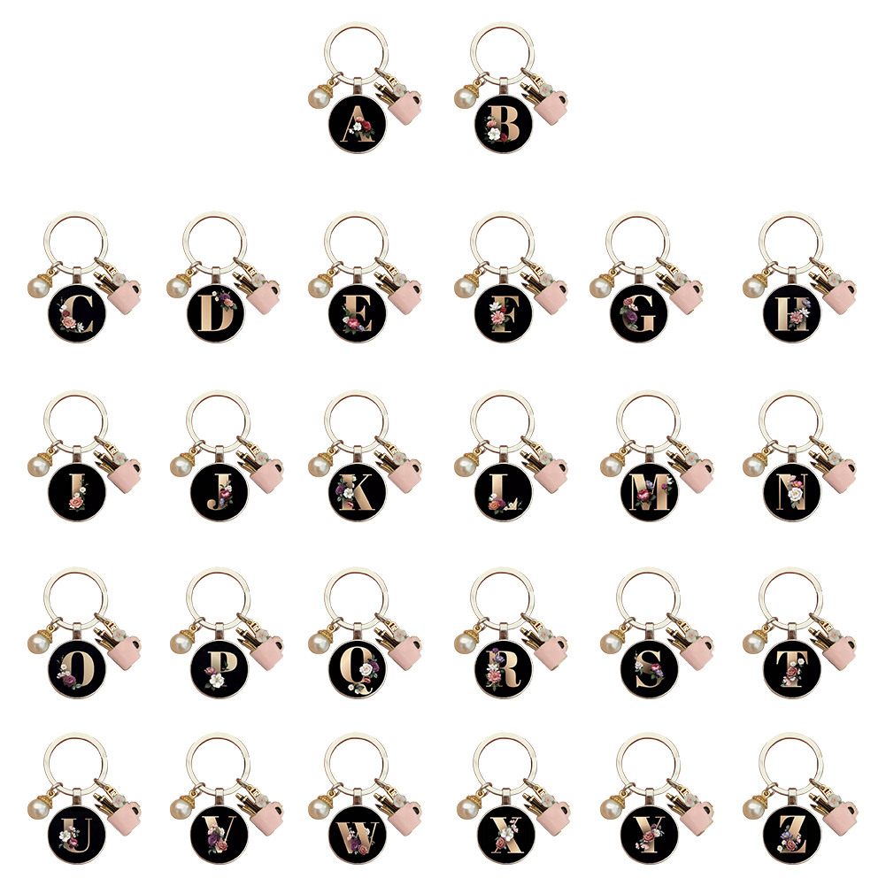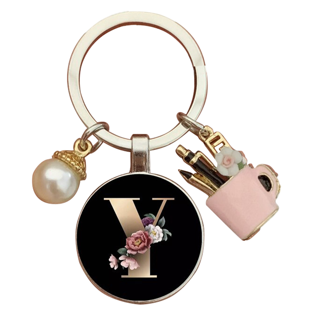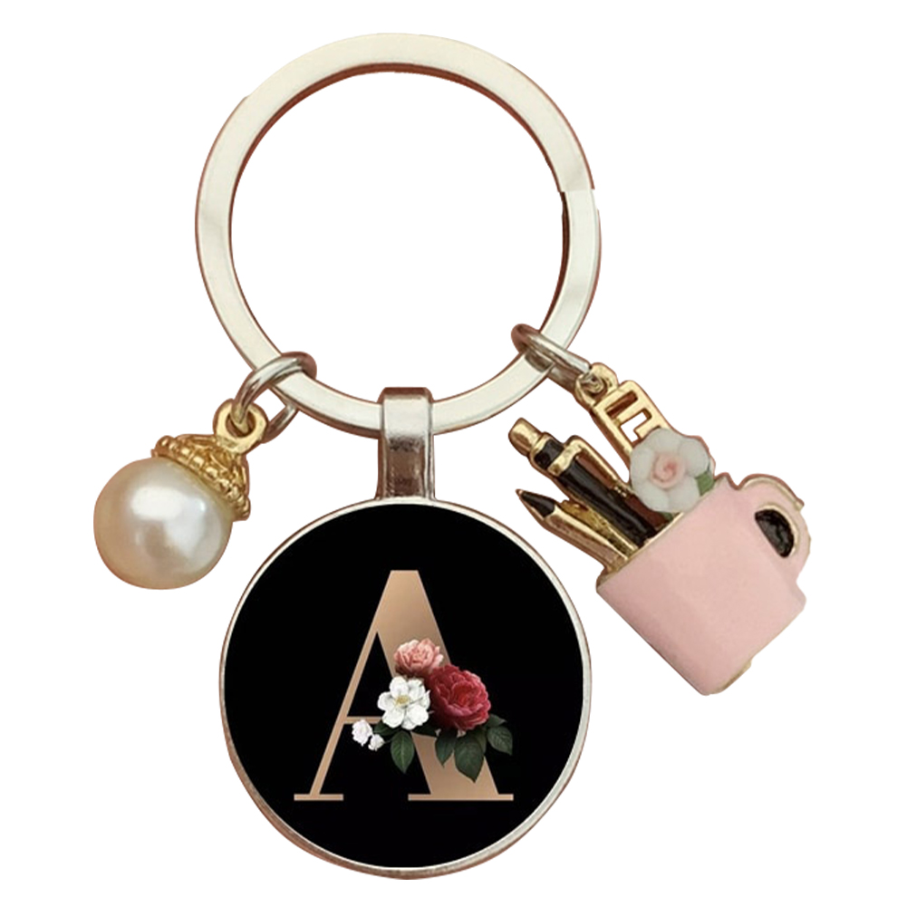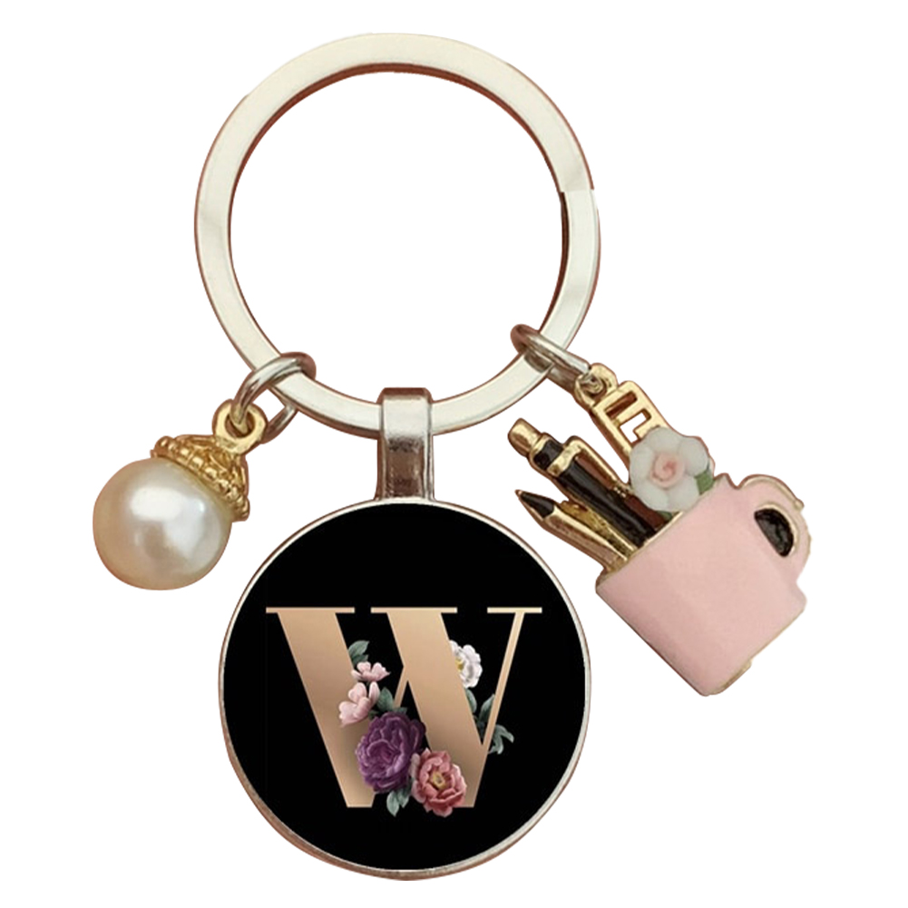 Resin Alphabet Letter Keychain Pearl Alphabet Key Ring Charms for Key Handbag Backpack