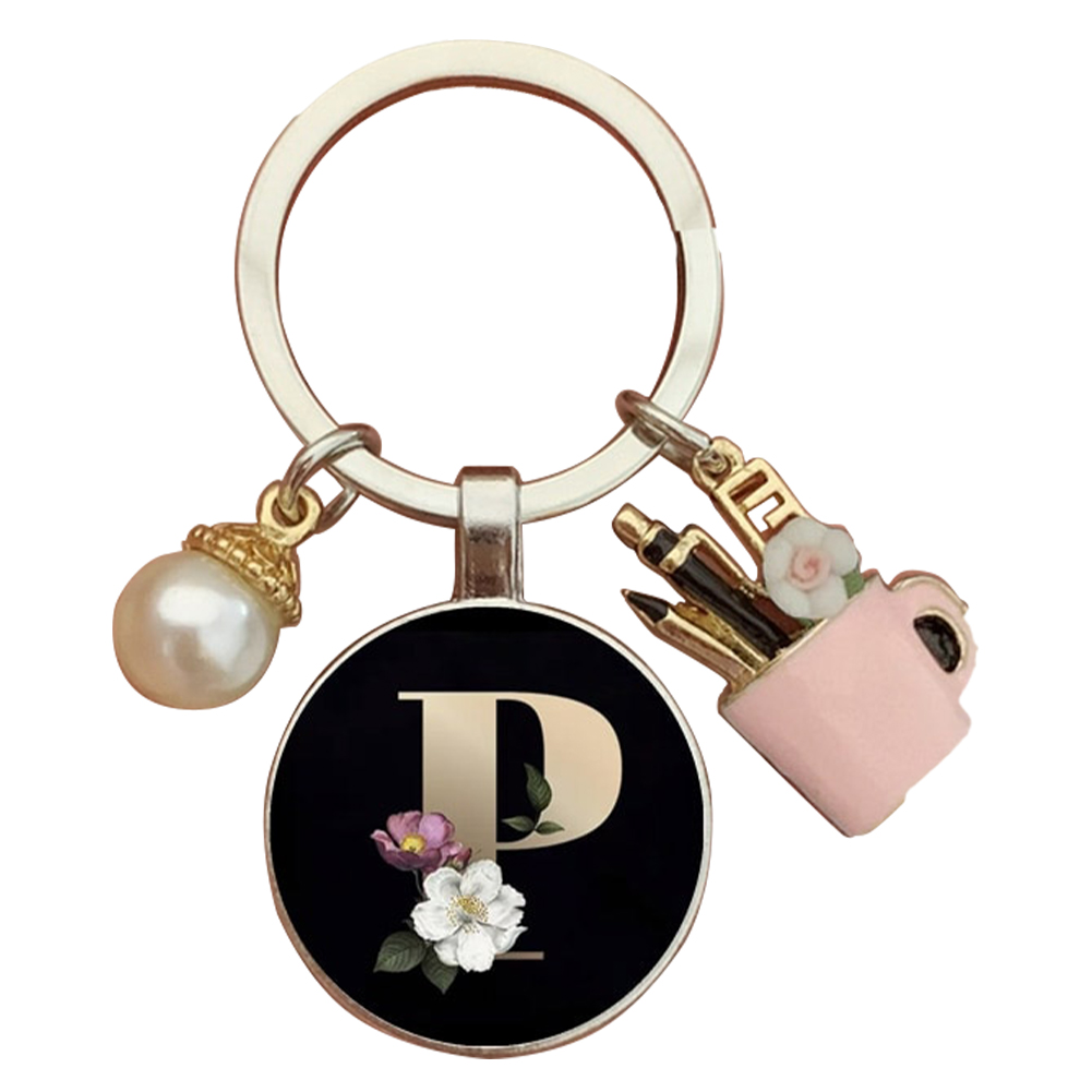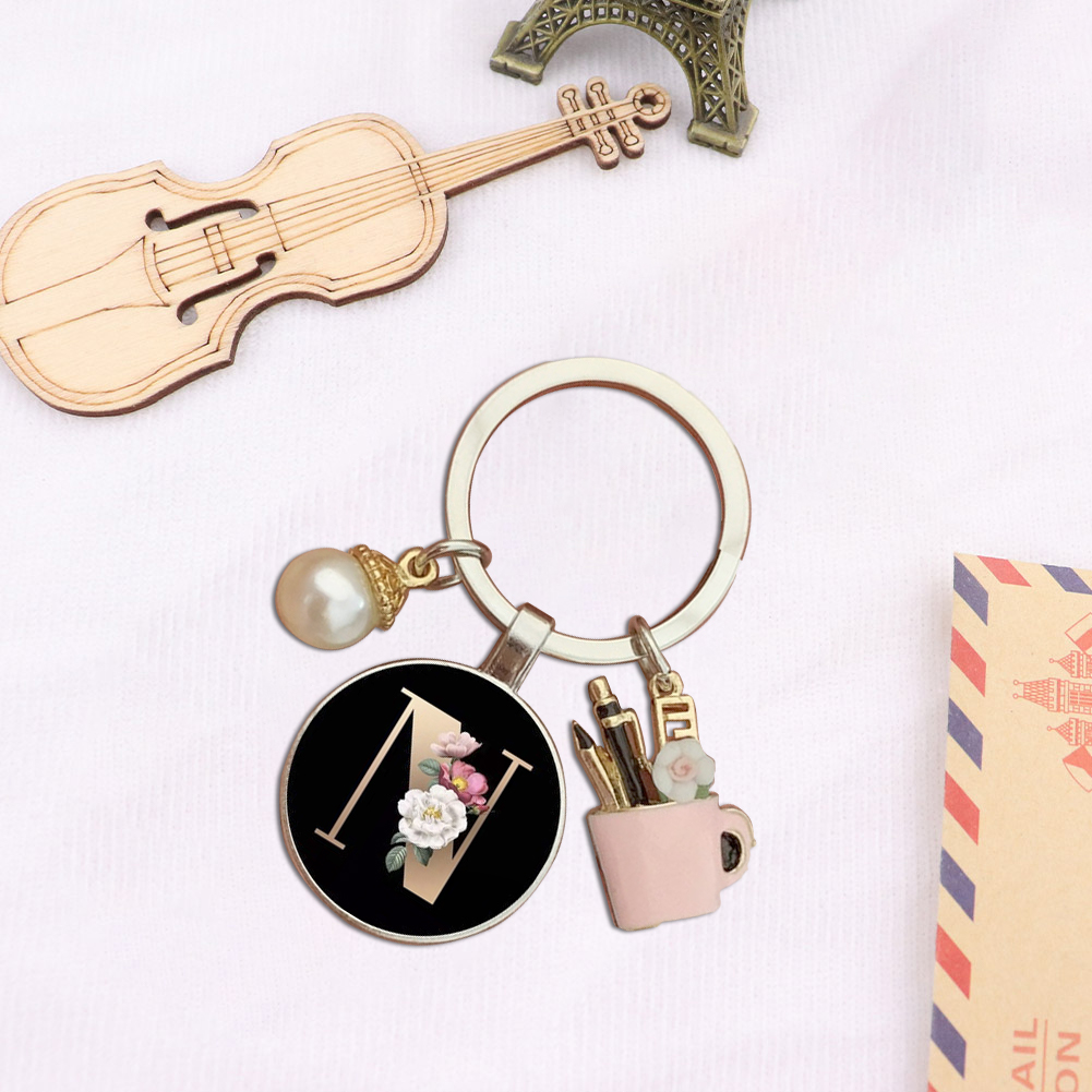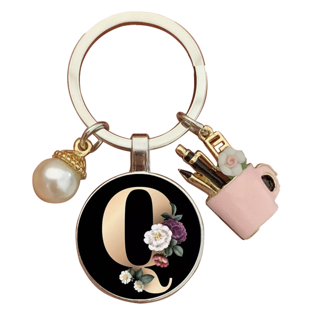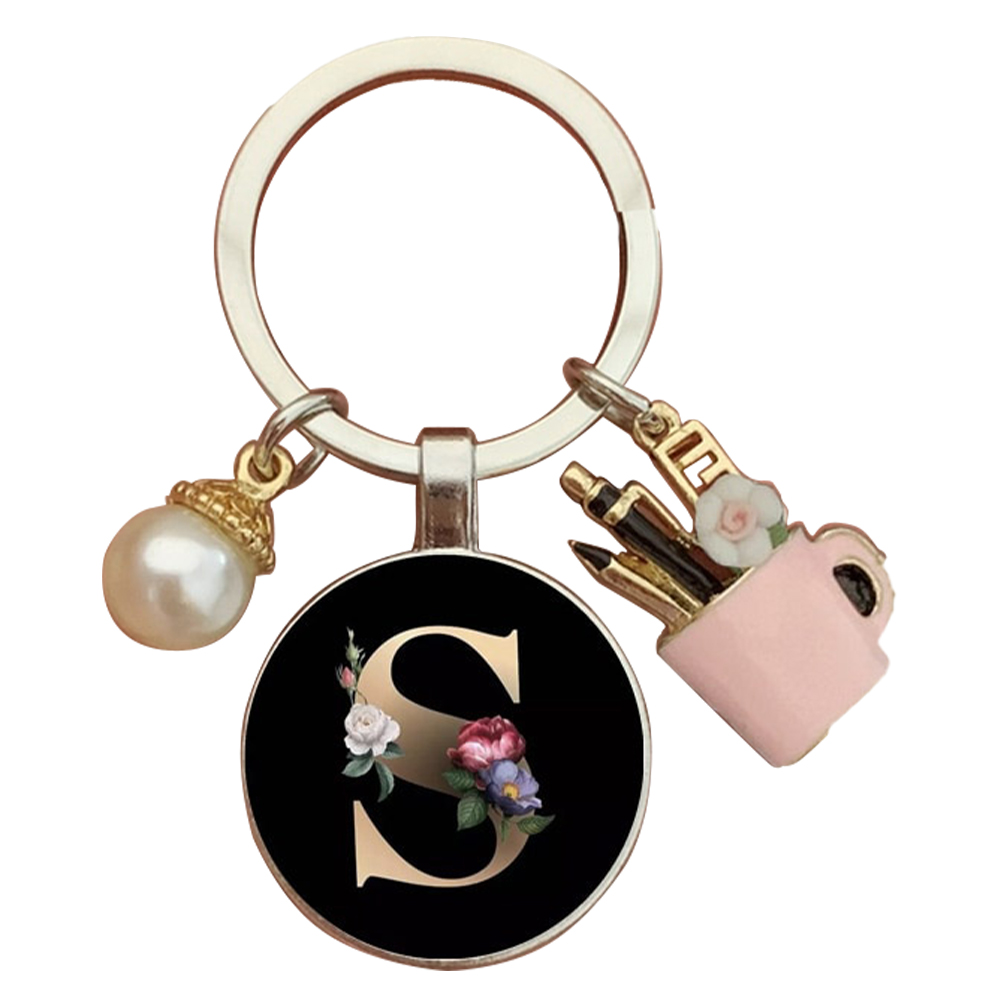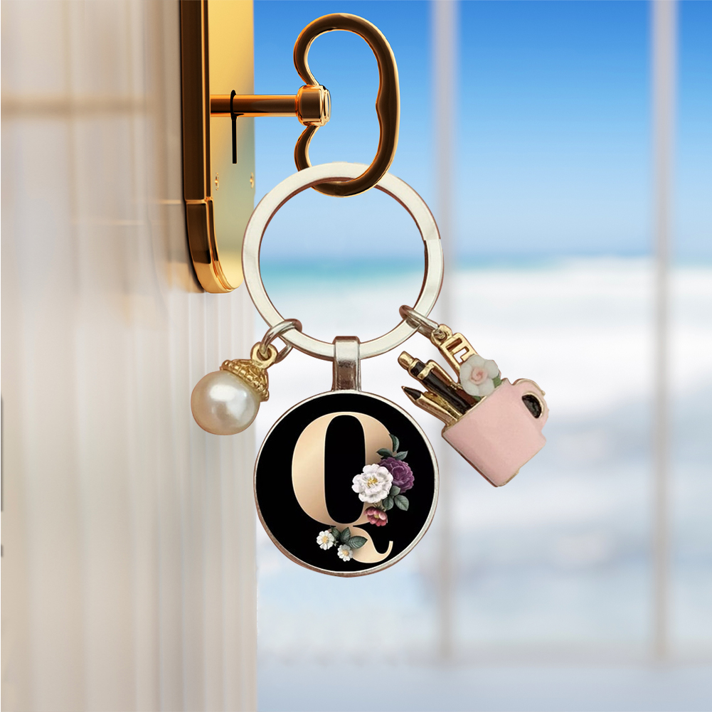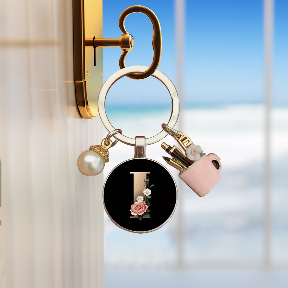 Resin Alphabet Letter Keychain Pearl Alphabet Key Ring Charms for Key Handbag Backpack