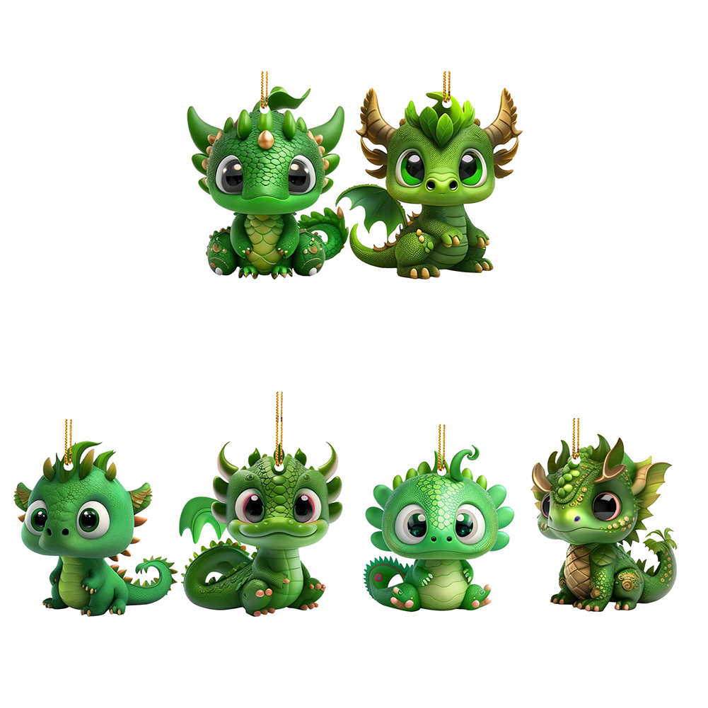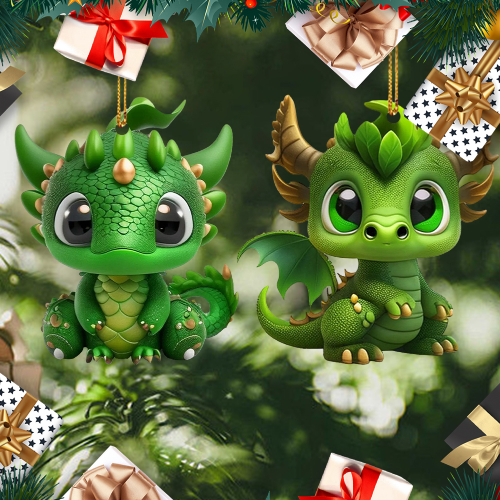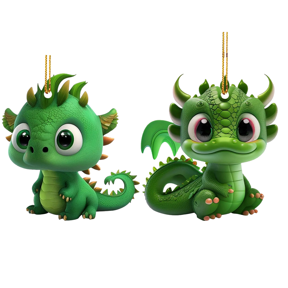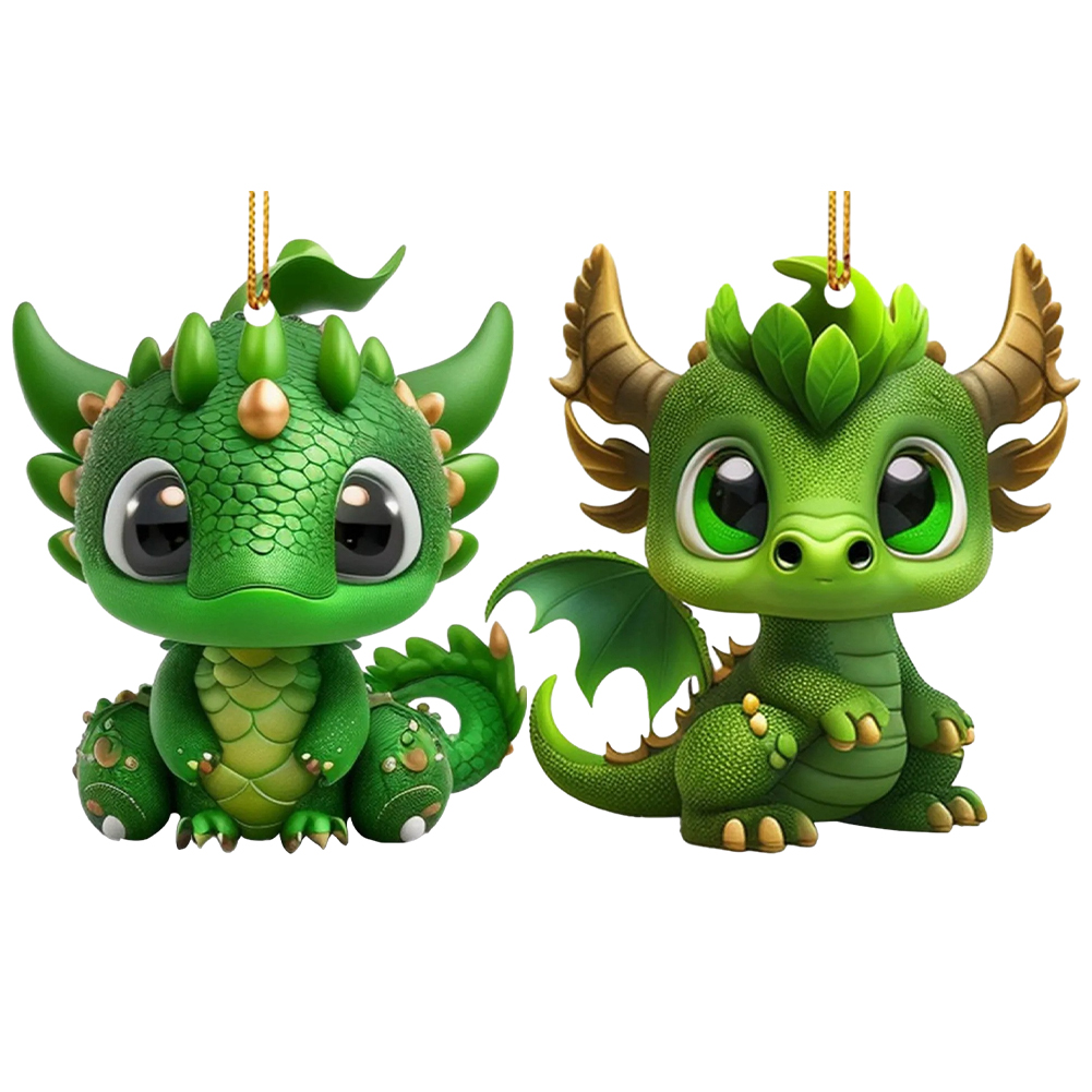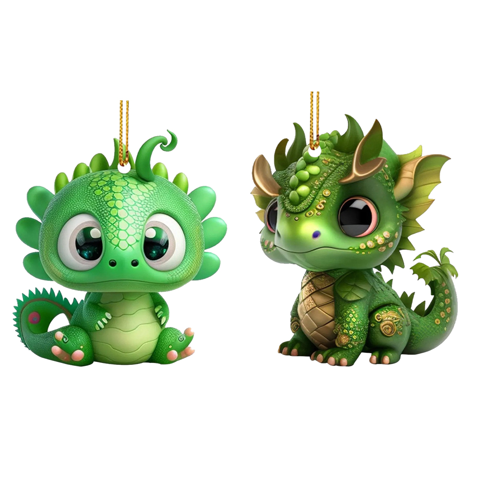 2 PCS Acrylic Cute Green Dragon 2D Flat Dinosaur Christmas Tree Car Decoration