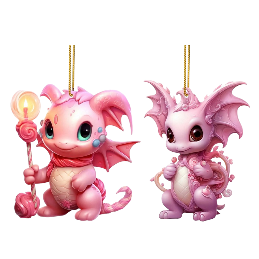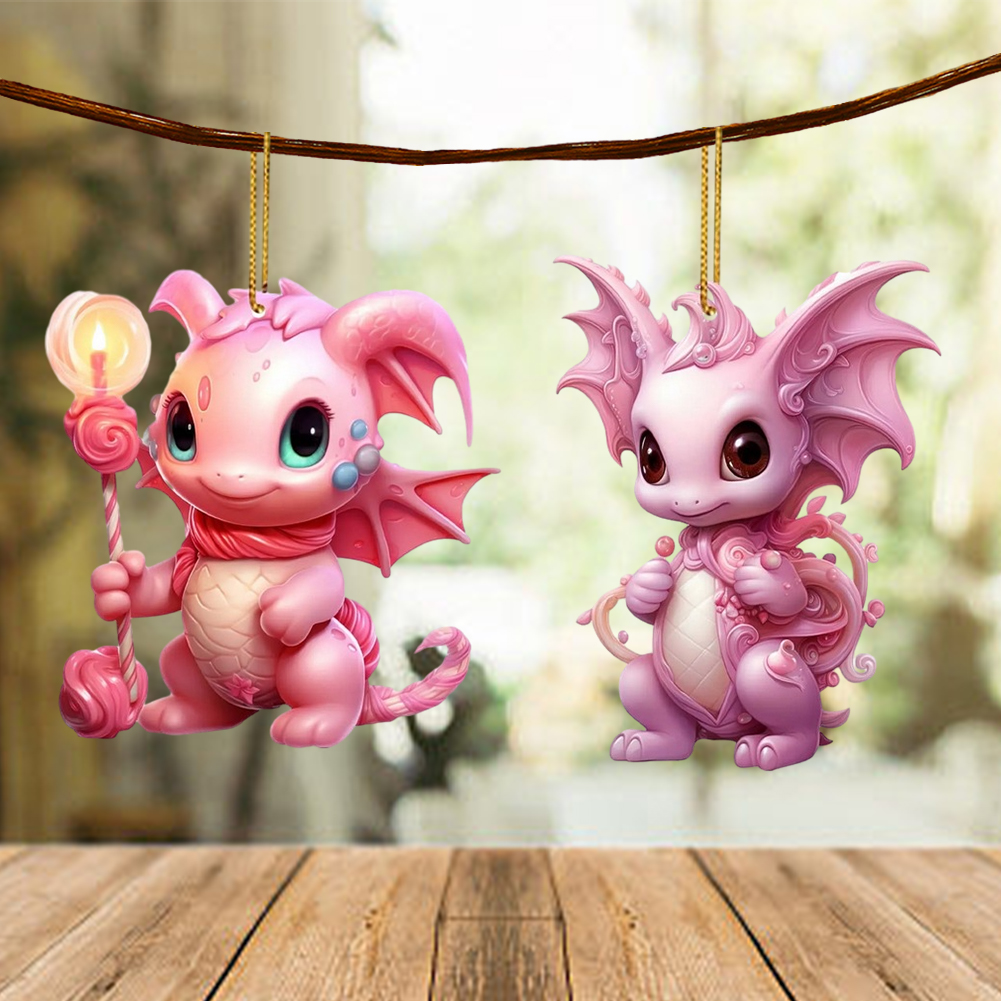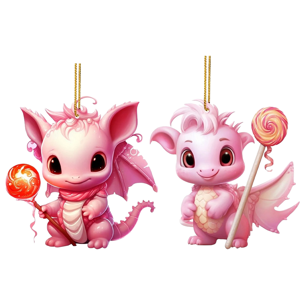 2 PCS Acrylic Pink Dinosaur 2D Flat Xmas Hanging Pendant New Year Birthday Gifts