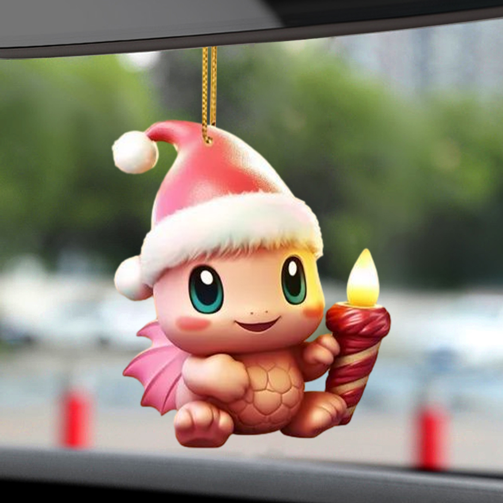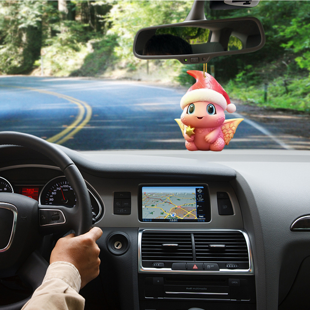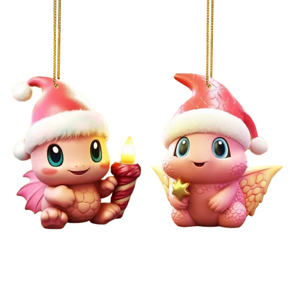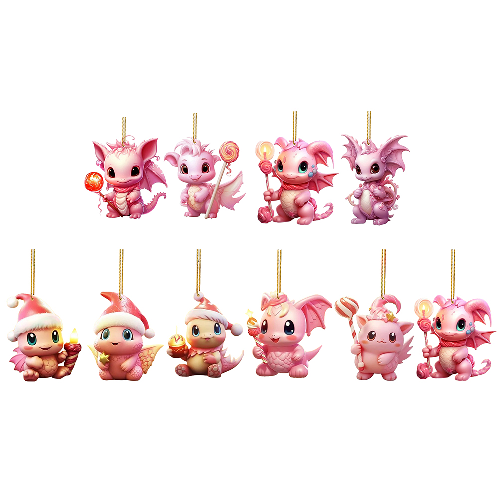 2 PCS Acrylic Pink Dinosaur 2D Flat Xmas Hanging Pendant New Year Birthday Gifts