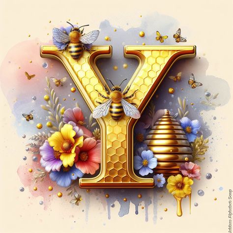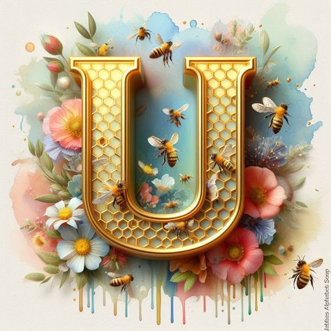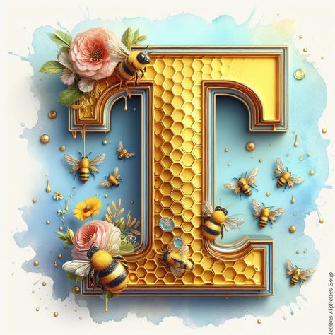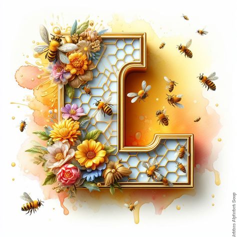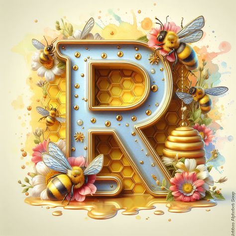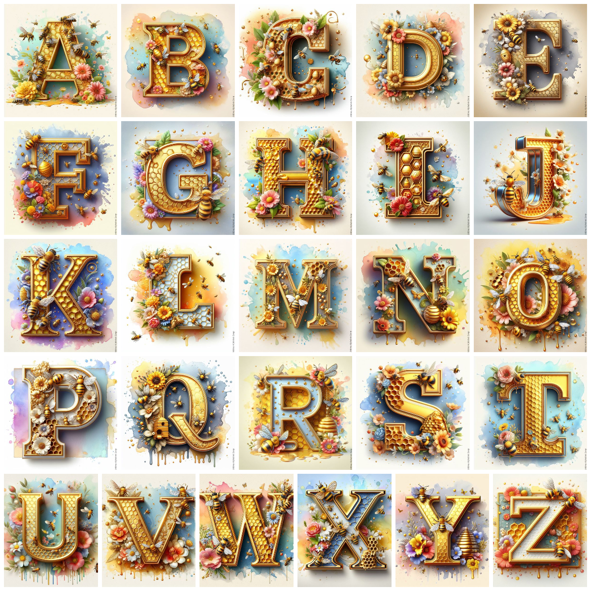 Diamond Painting - Full Round Drill - Bee Alphabet(Canvas|30*30cm)