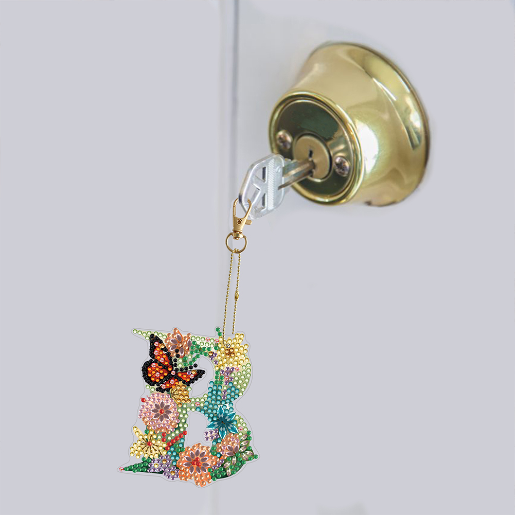 DIY B Diamond Art Key Rings Lettter Keychain Supplies Gift for Kids(Double Sided)