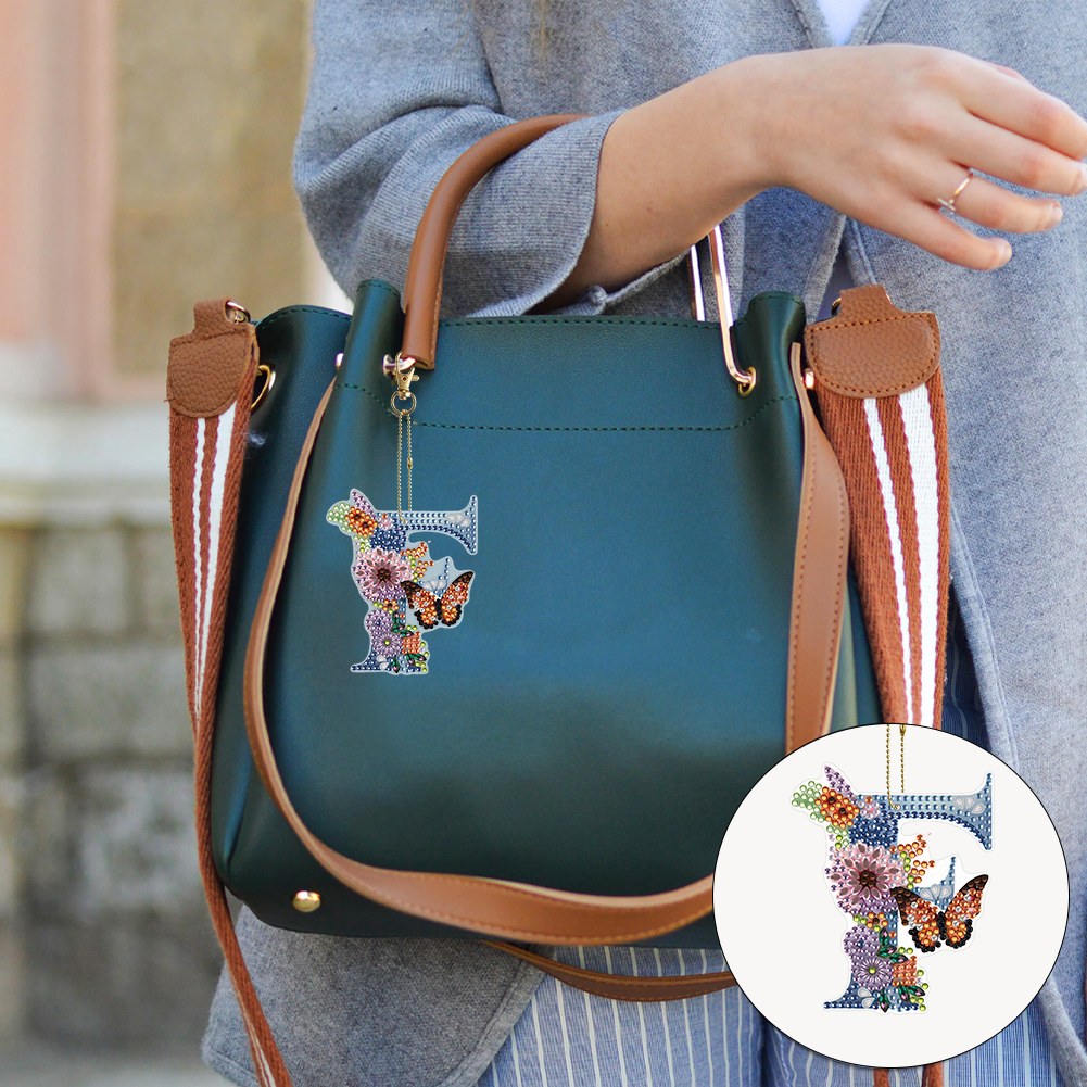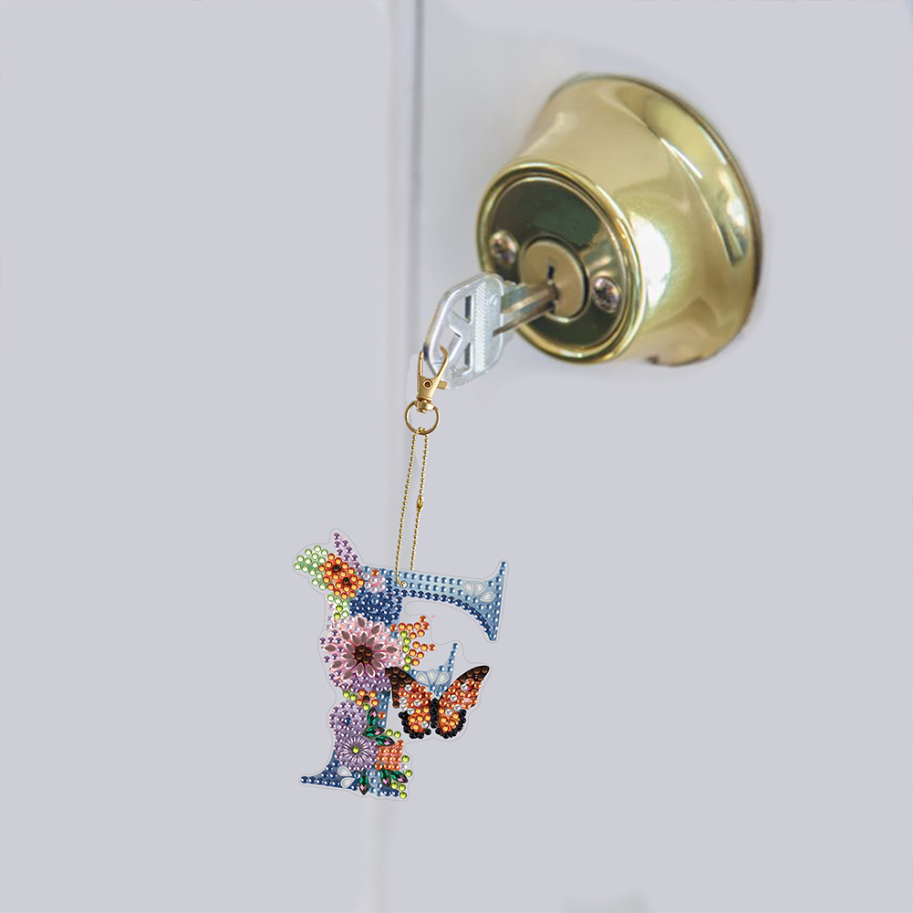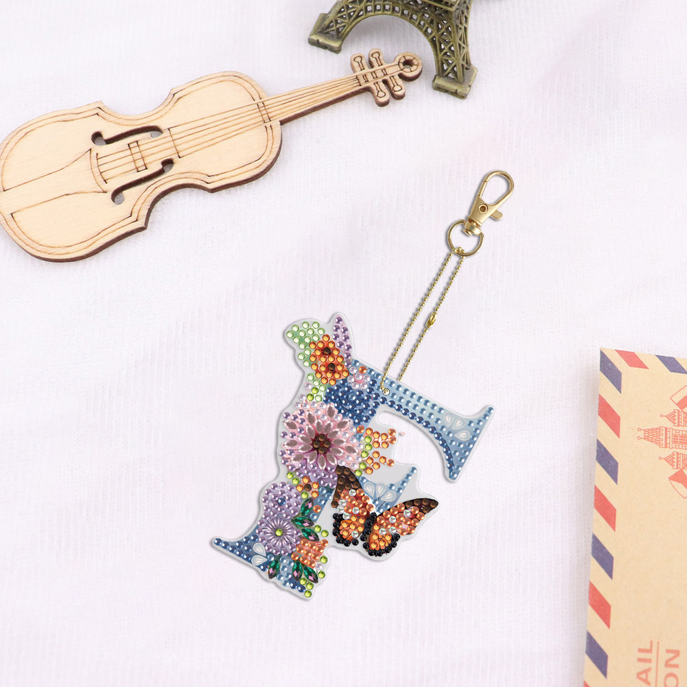 DIY F Diamond Art Key Rings Lettter Keychain Supplies Gift for Kids(Double Sided)
