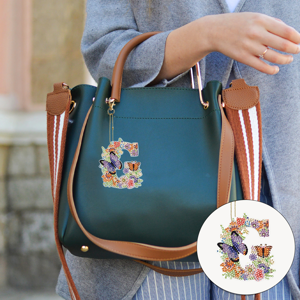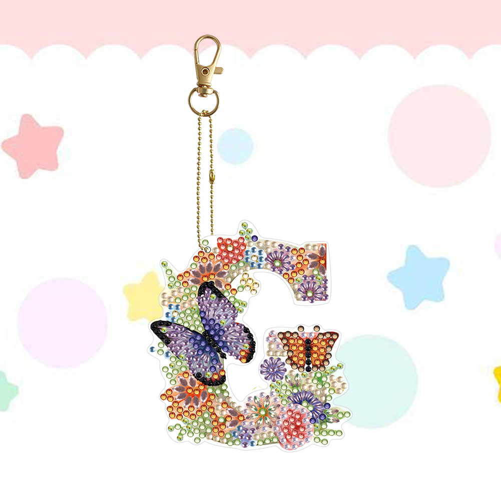 DIY G Diamond Art Key Rings Lettter Keychain Supplies Gift for Kids(Double Sided)