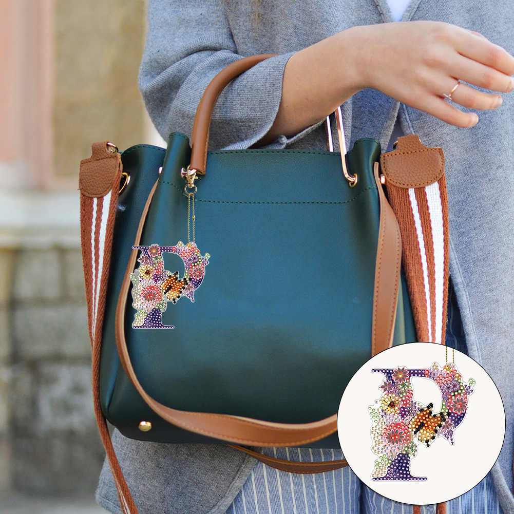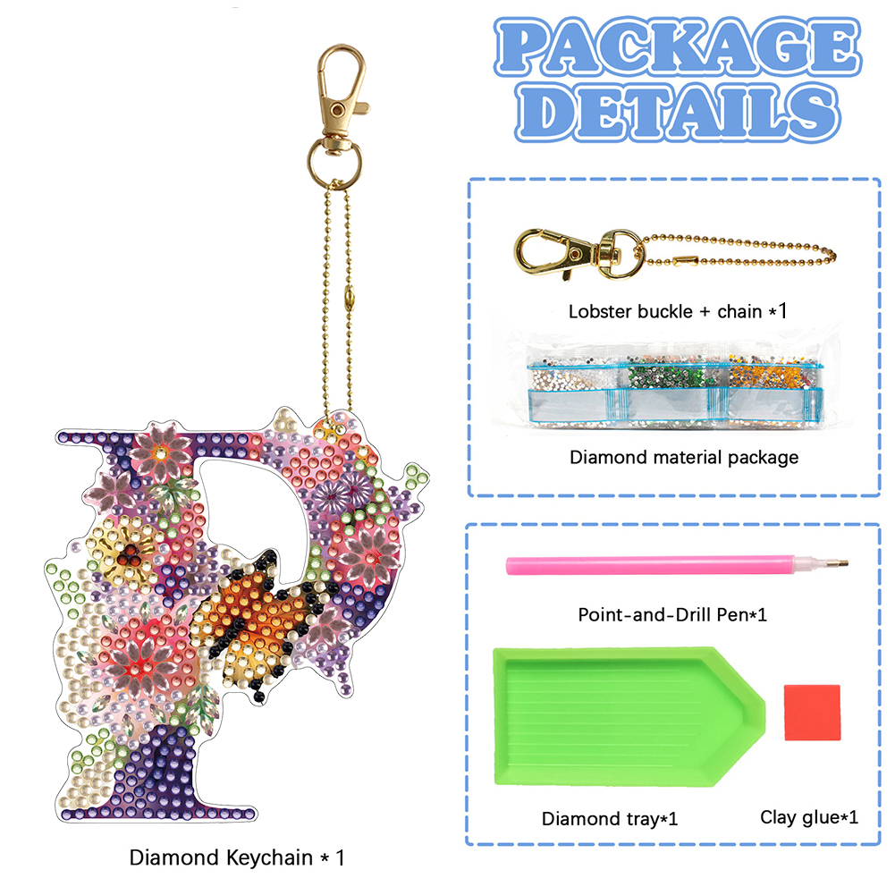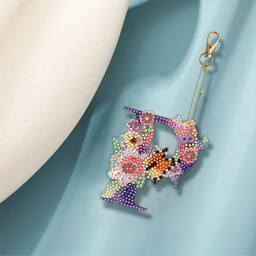 DIY P Diamond Art Key Rings Lettter Keychain Supplies Gift for Kids(Double Sided)