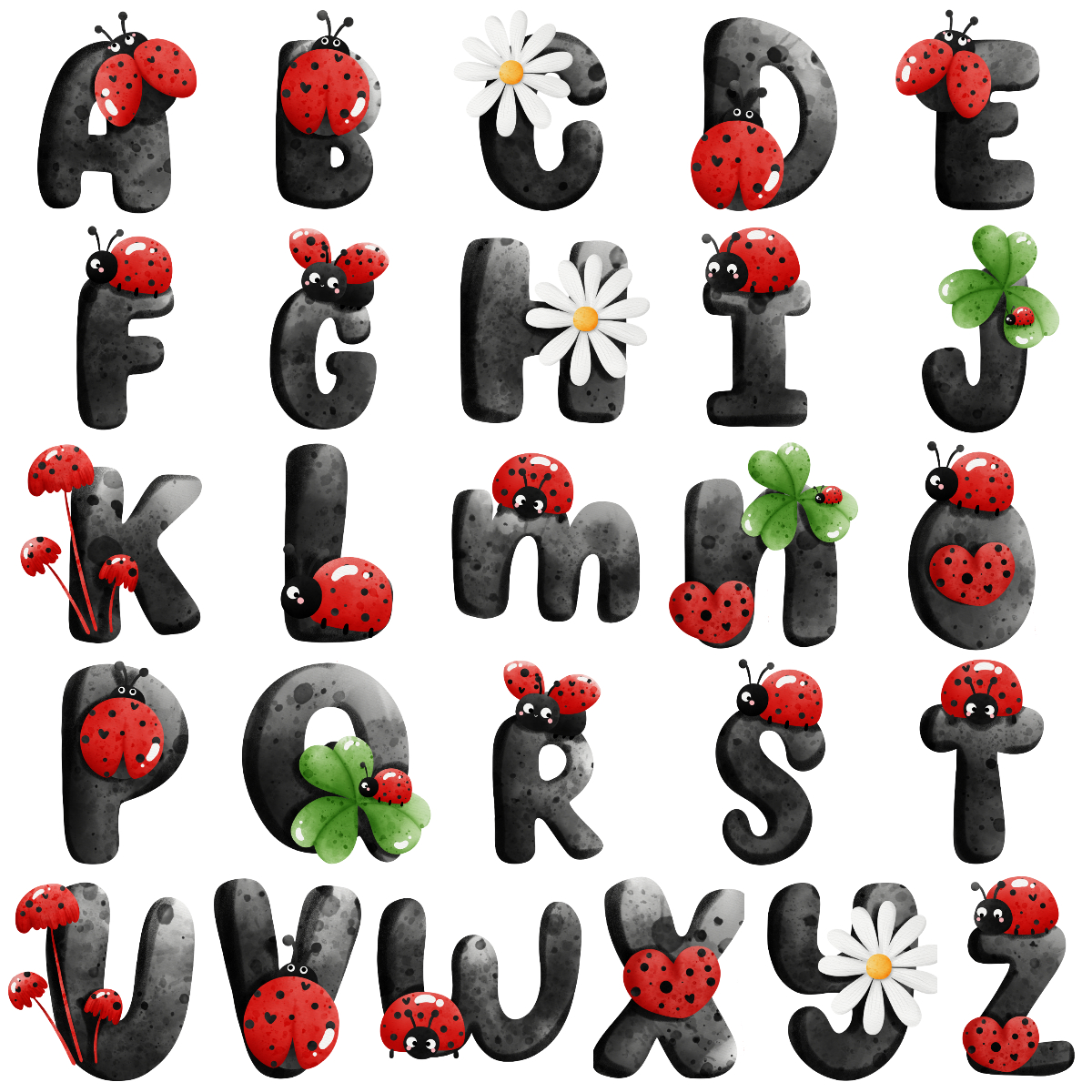Diamond Painting - Full Round/Square Drill - Ladybug Alphabet(30*30 - 50*50cm)