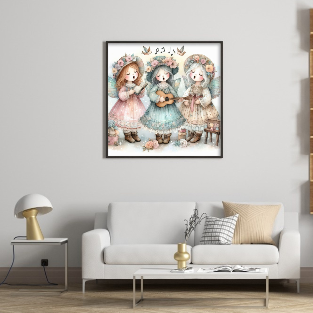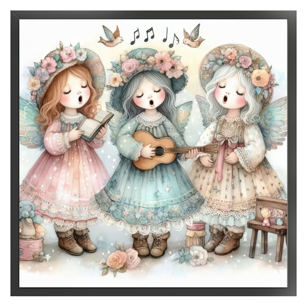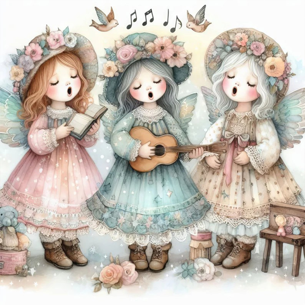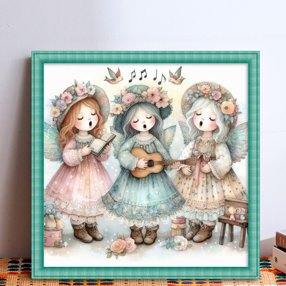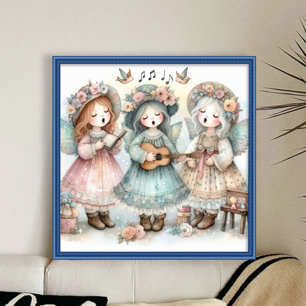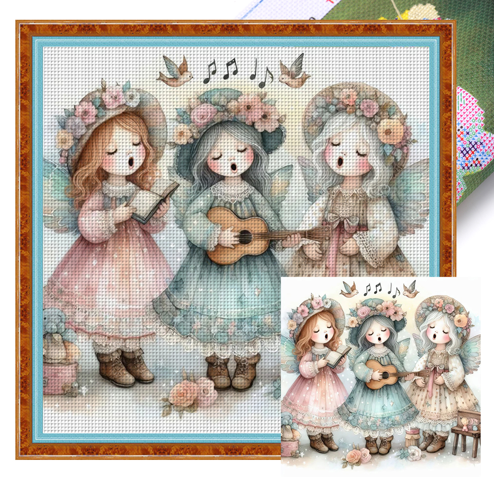 DIY Stamped Cross Stitch 11CT Full Embroidery 50*50cm - Angel Choir Playing Guitar
