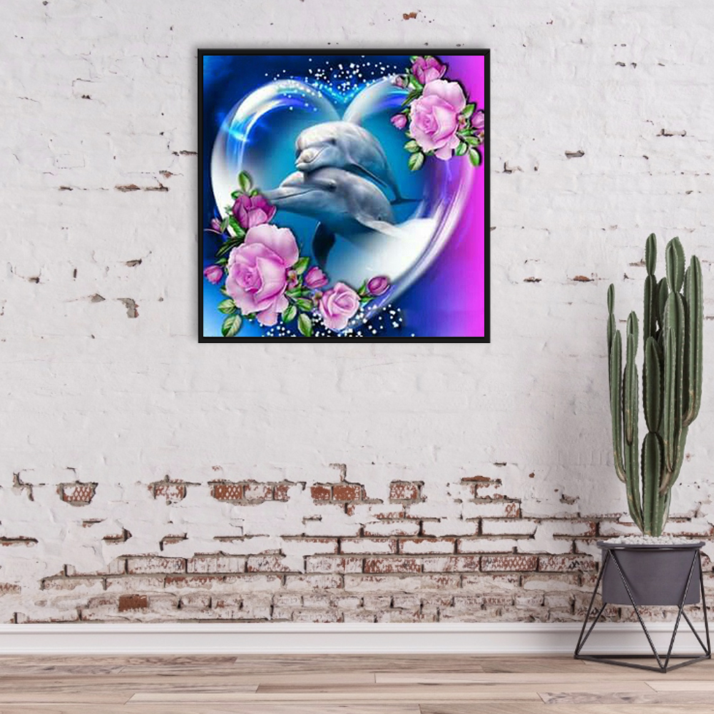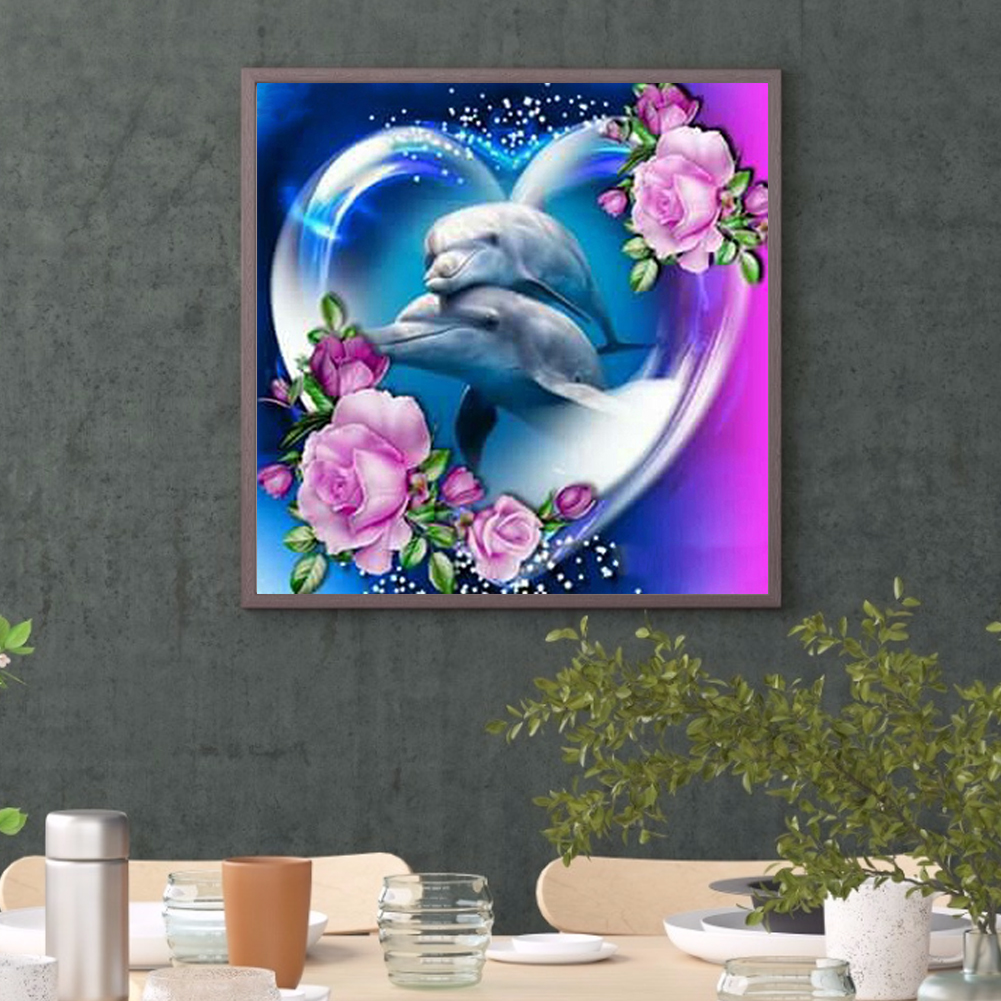 30x30cm 5D DIY Full Drill Round Diamond Painting Couples Dolphins Diamond Embroidery Mosaic Kit Home Decor Bead Art Wall Gift
