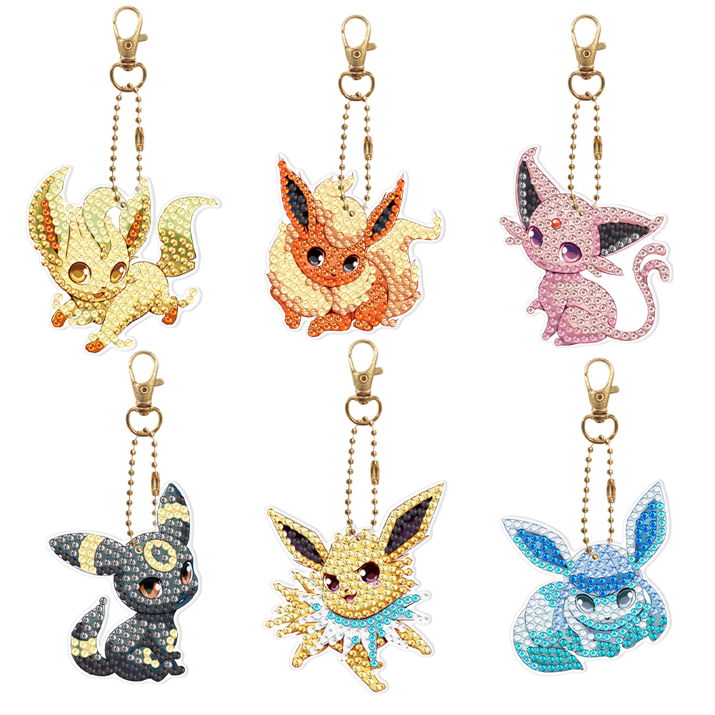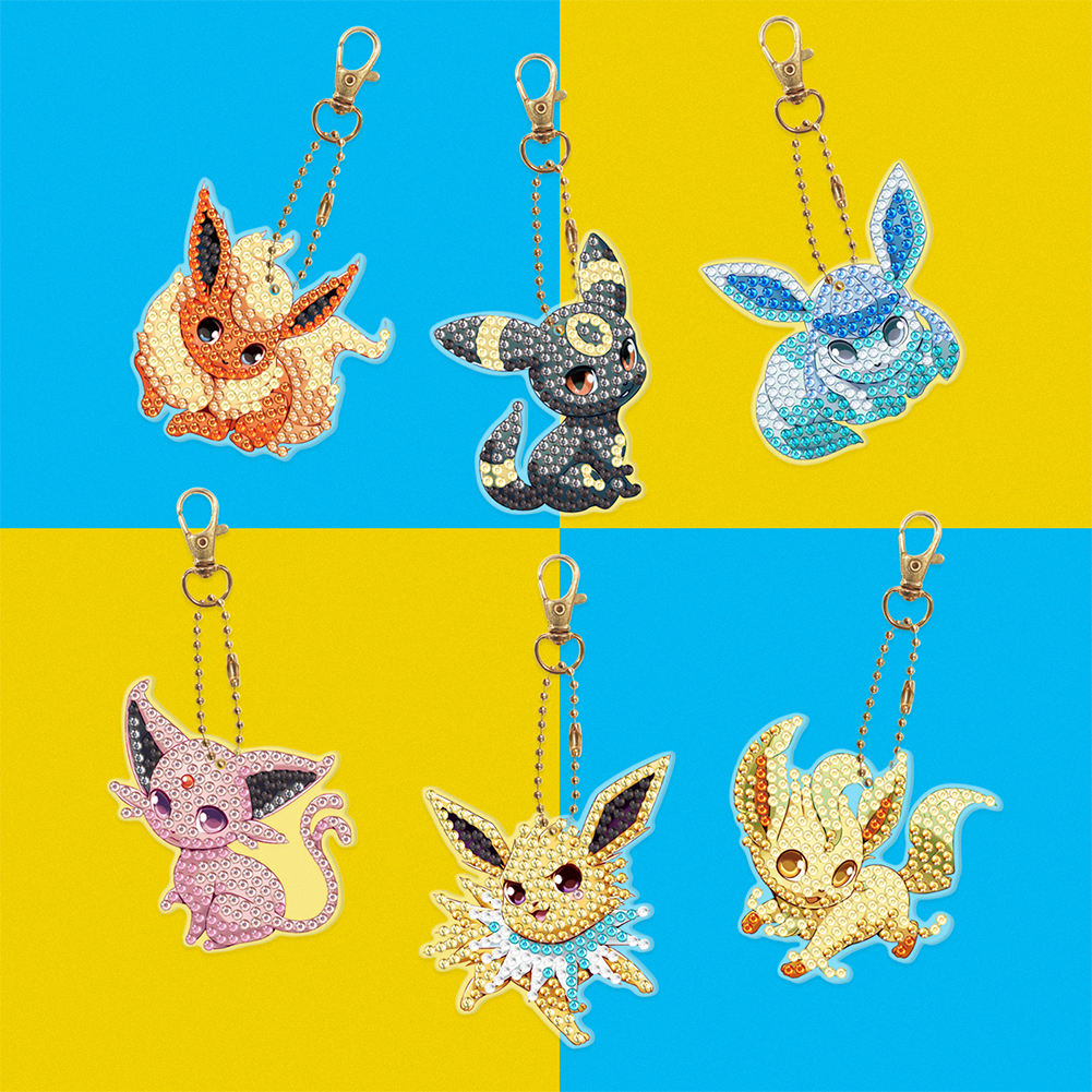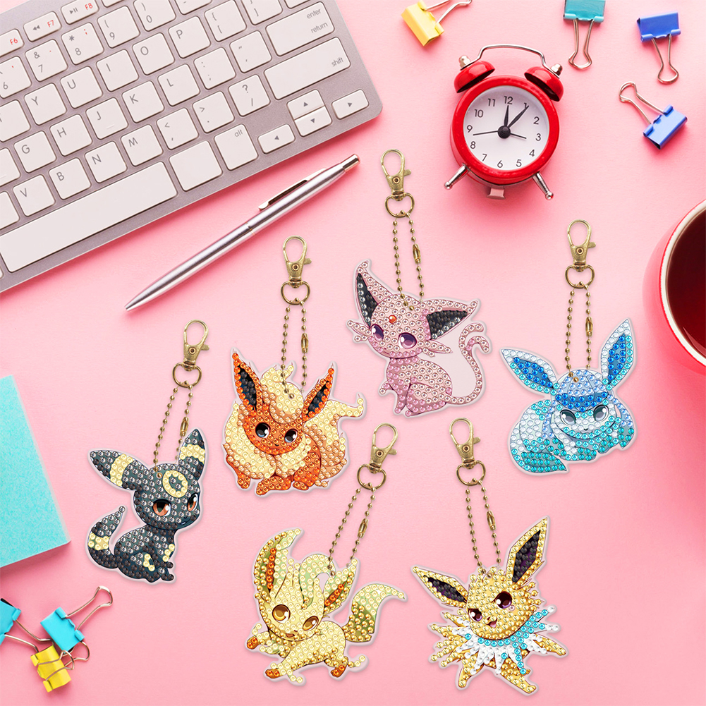 6pcs/set Diamond Painting Pokemon Keychains Acrylic DIY Key Chains Charm Crafts