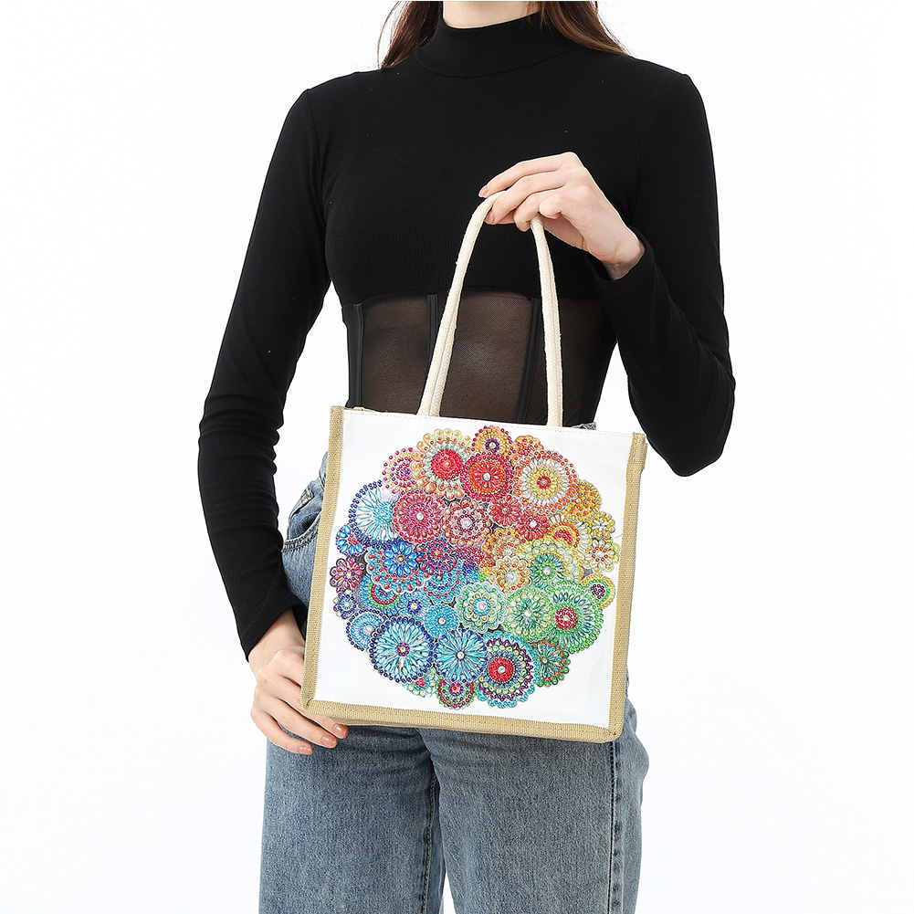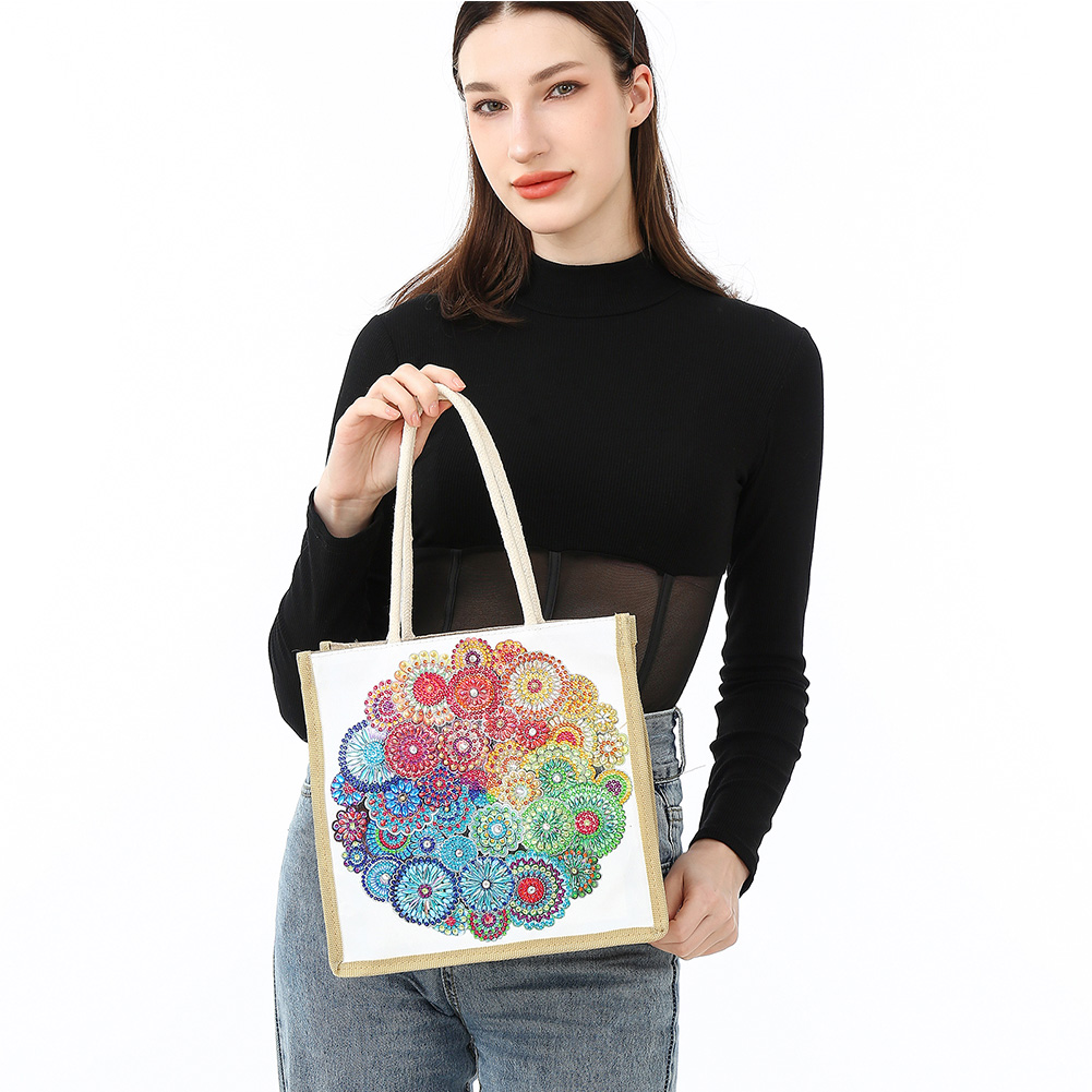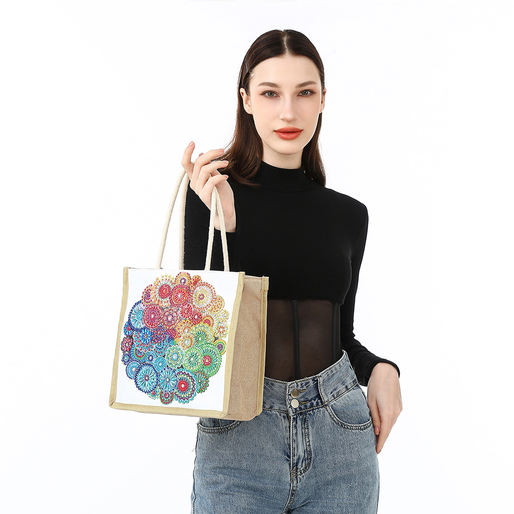 Mandala Diamond Painting Handbag DIY Linen Shopping Tote Bag