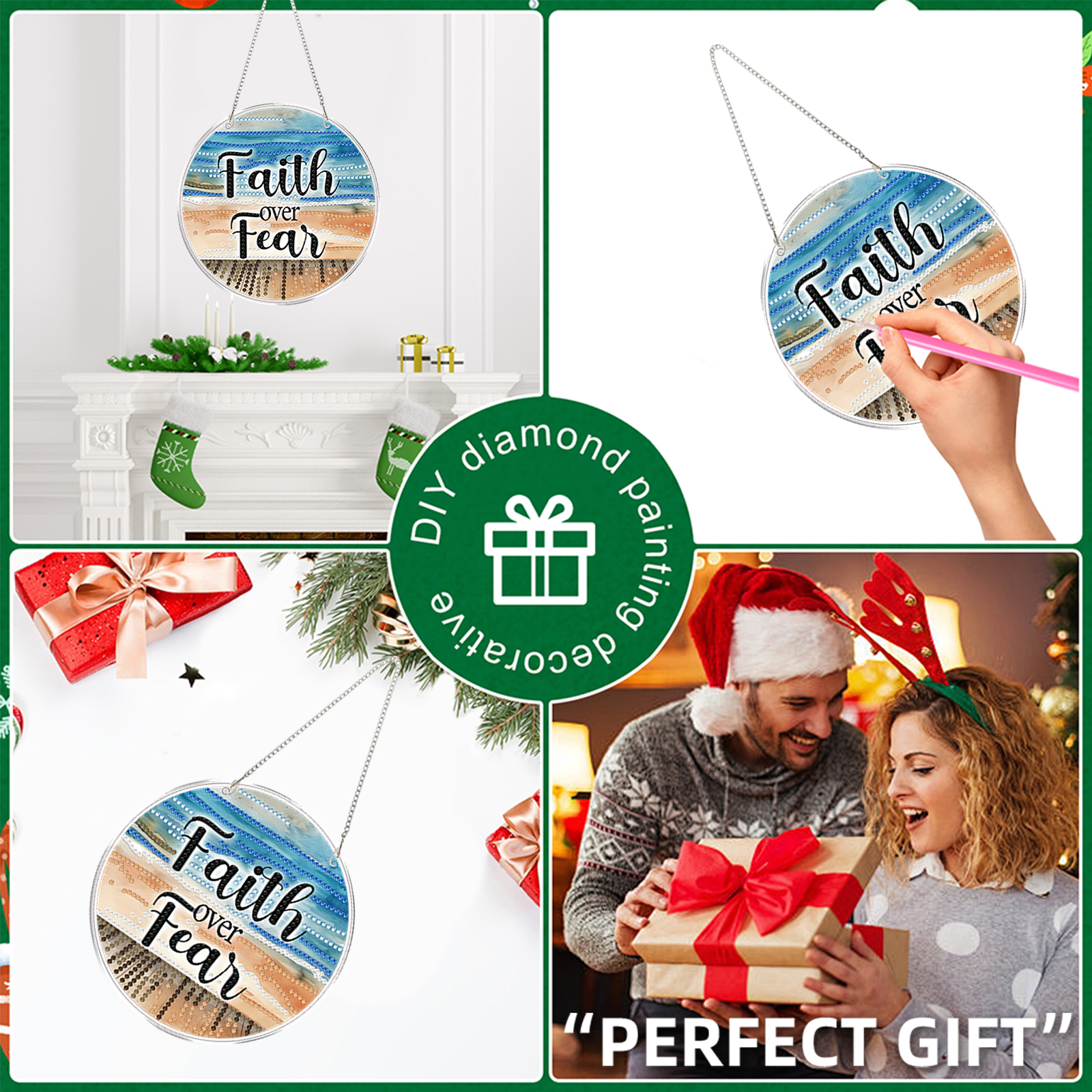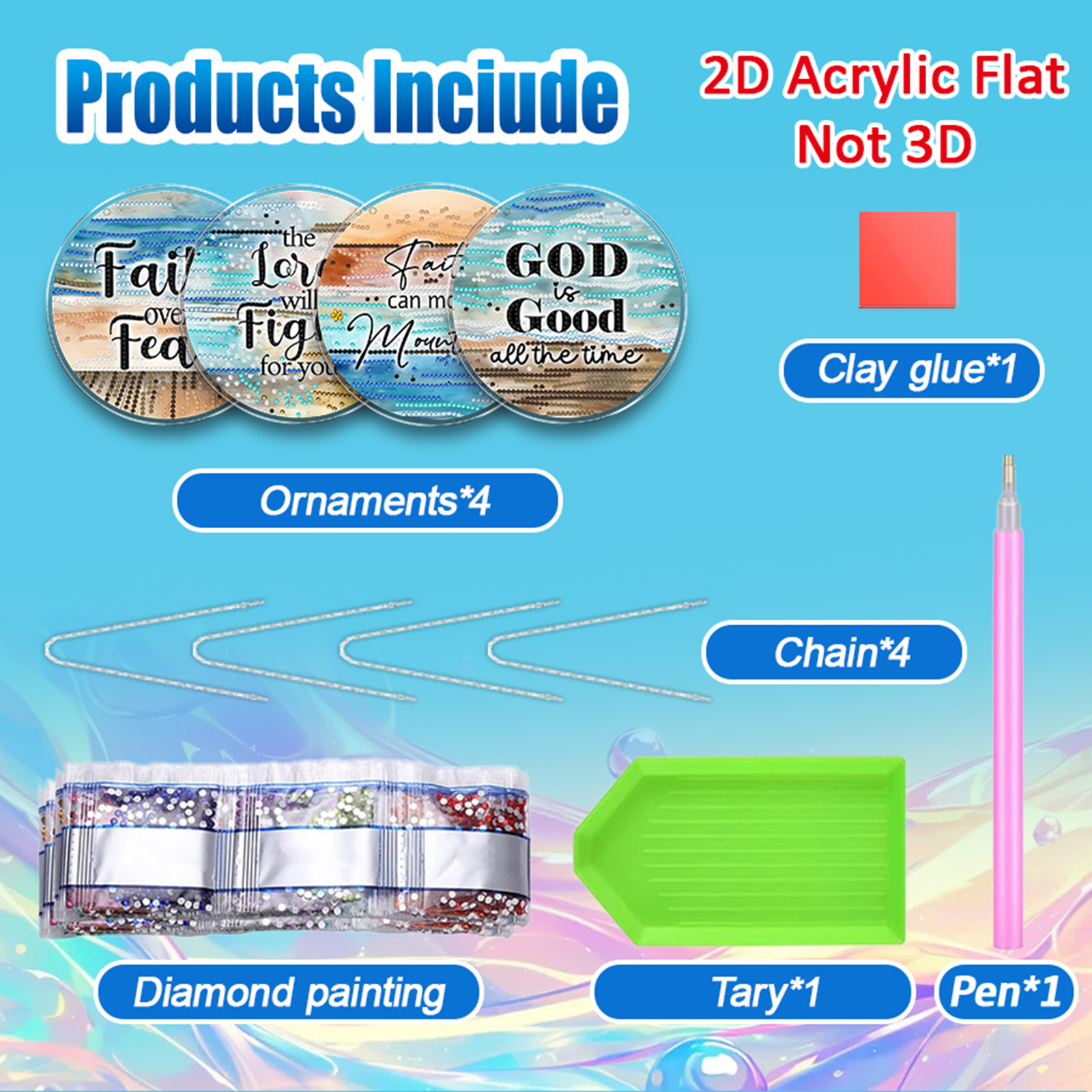 4pcs Beach Text DIY 2D Flat Acrylic Diamond Painting Kits Diamond Art Pendant