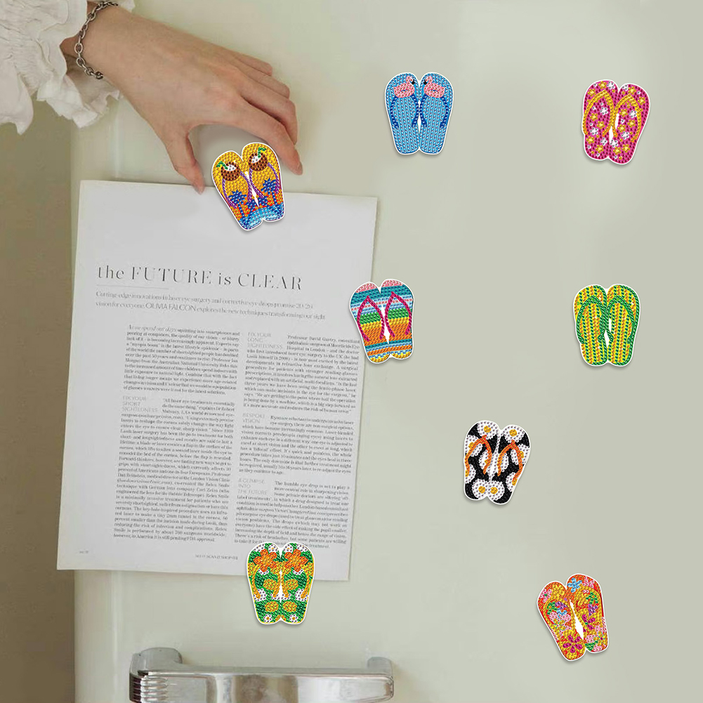 8Pcs DIY Beach Slippers Special Shape Diamond Painting Fridge Magnet for Home Decor