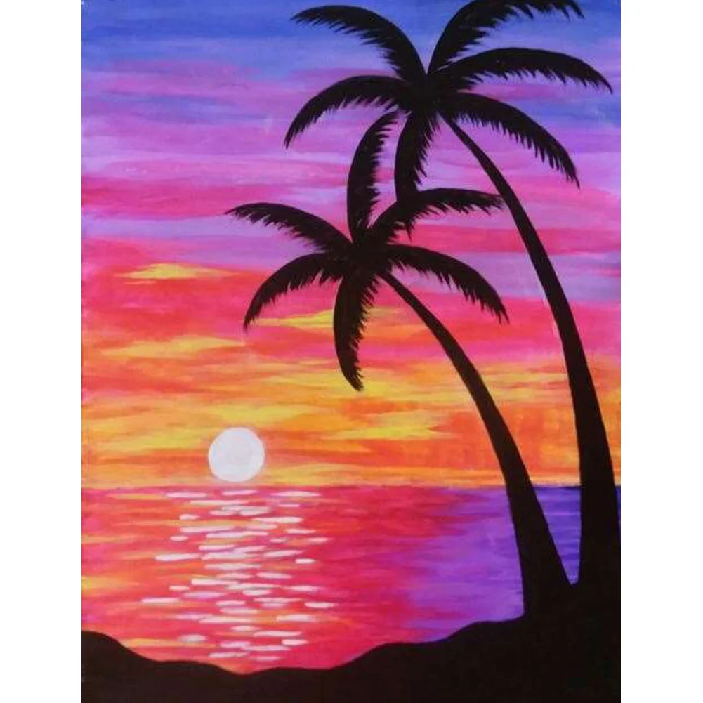 (DF3140) 5D DIY Full Drill Diamond Painting Beach Tree Embroidery Mosaic Kit (W1282) 20X30cm