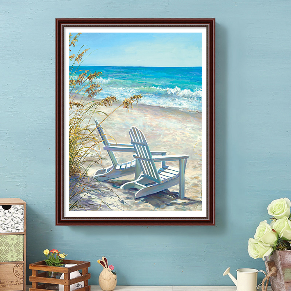 DIY 5D Mosaic Full Drill Round Shape Diamond Beach Lounge Chair Resin Painting Kit Rhinestone Drawing Home Art Craft Bedroom Decoration