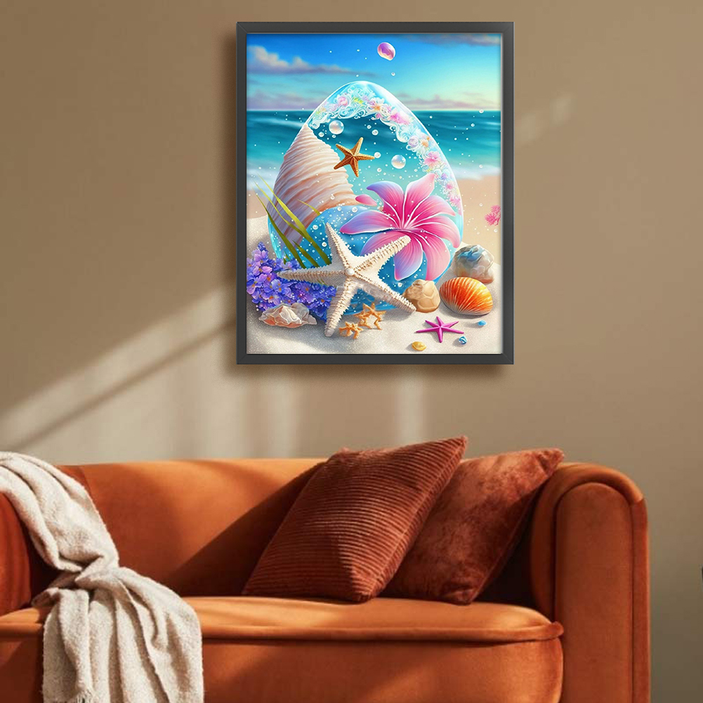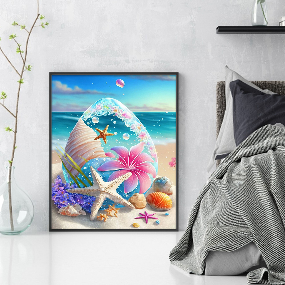 11CT Full Embroidery Stamped Cross Stitch - Beach Shell(Canvas|40x50cm)