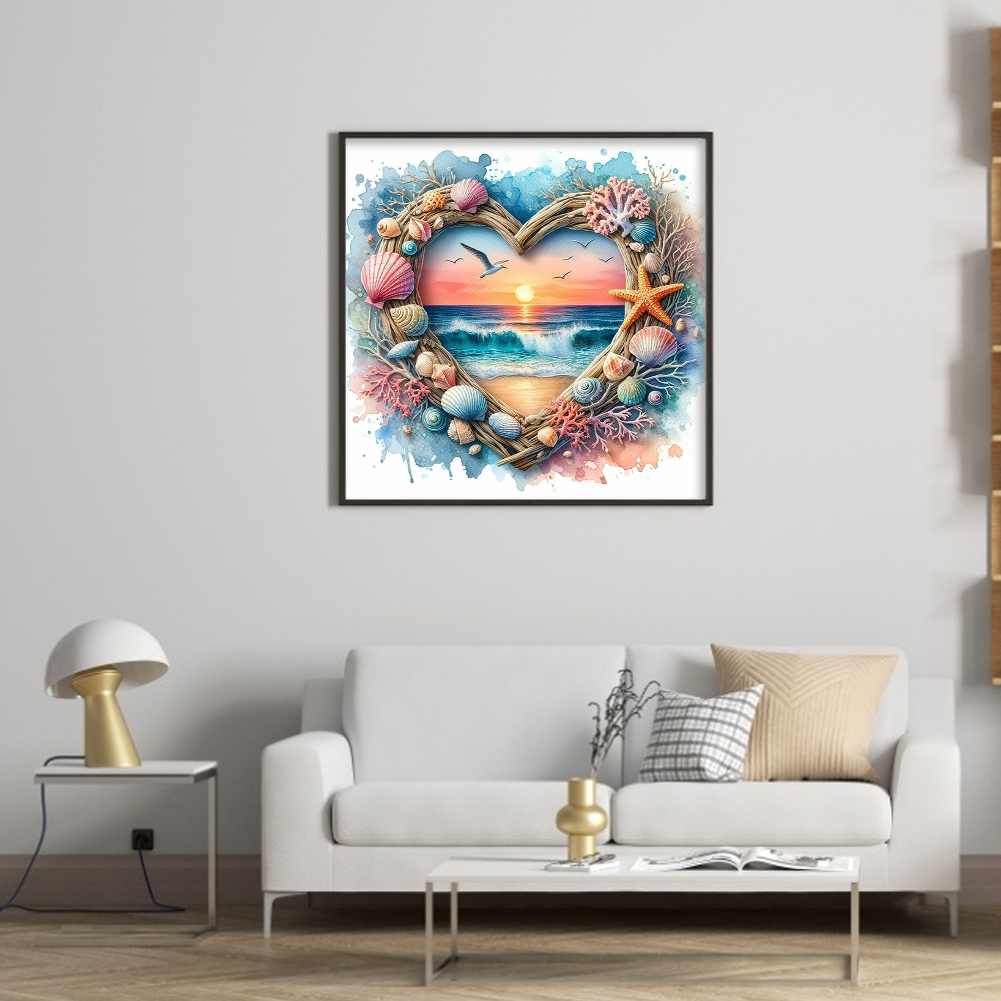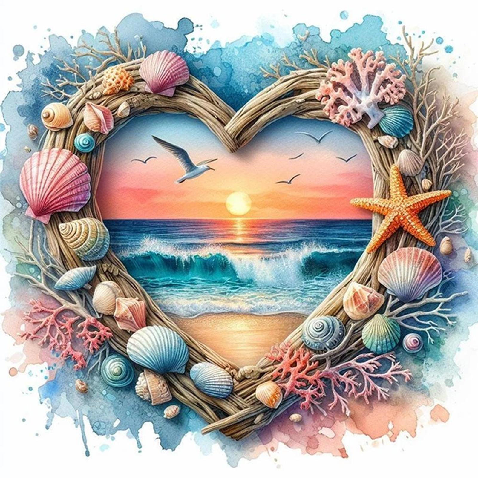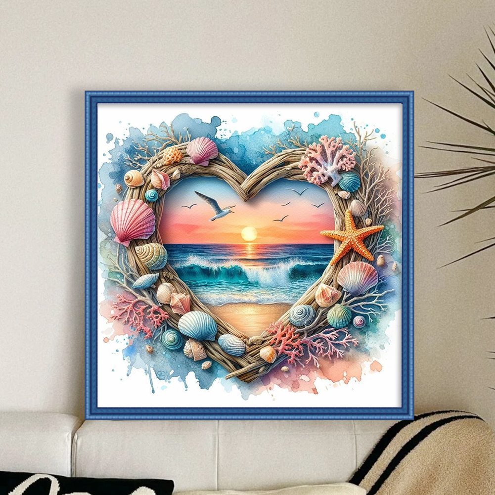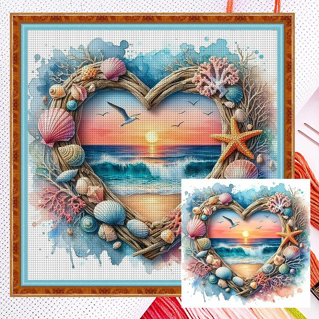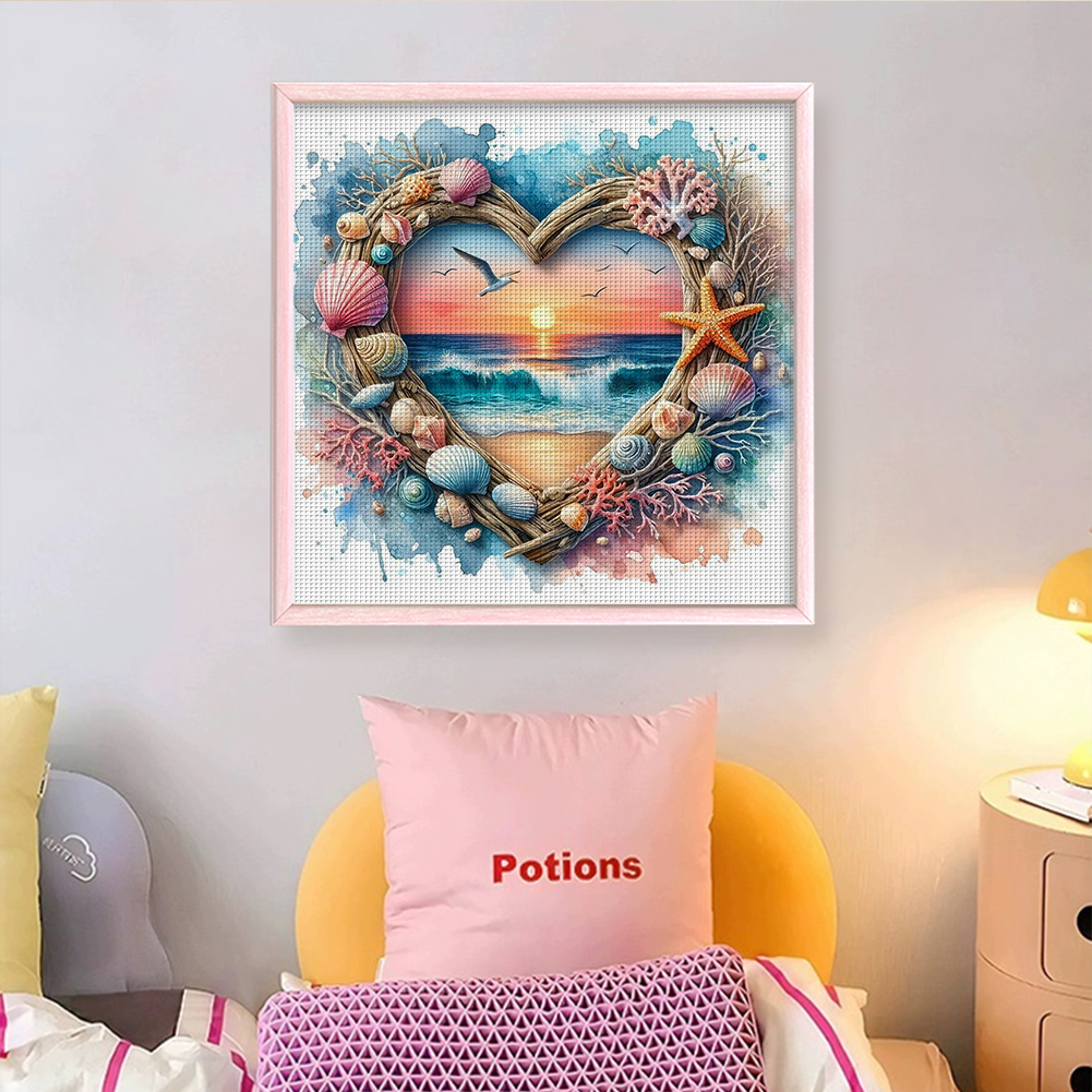Heart-Shaped Beach Shells Full 14CT 2 Strands DIY Counted Embroidery Needlepoint Starter Kits Cross Stitch Patterns Arts Craft Kits for Beginners Adults Home Decor