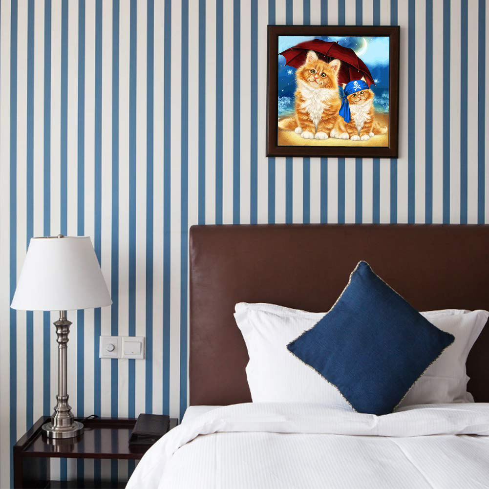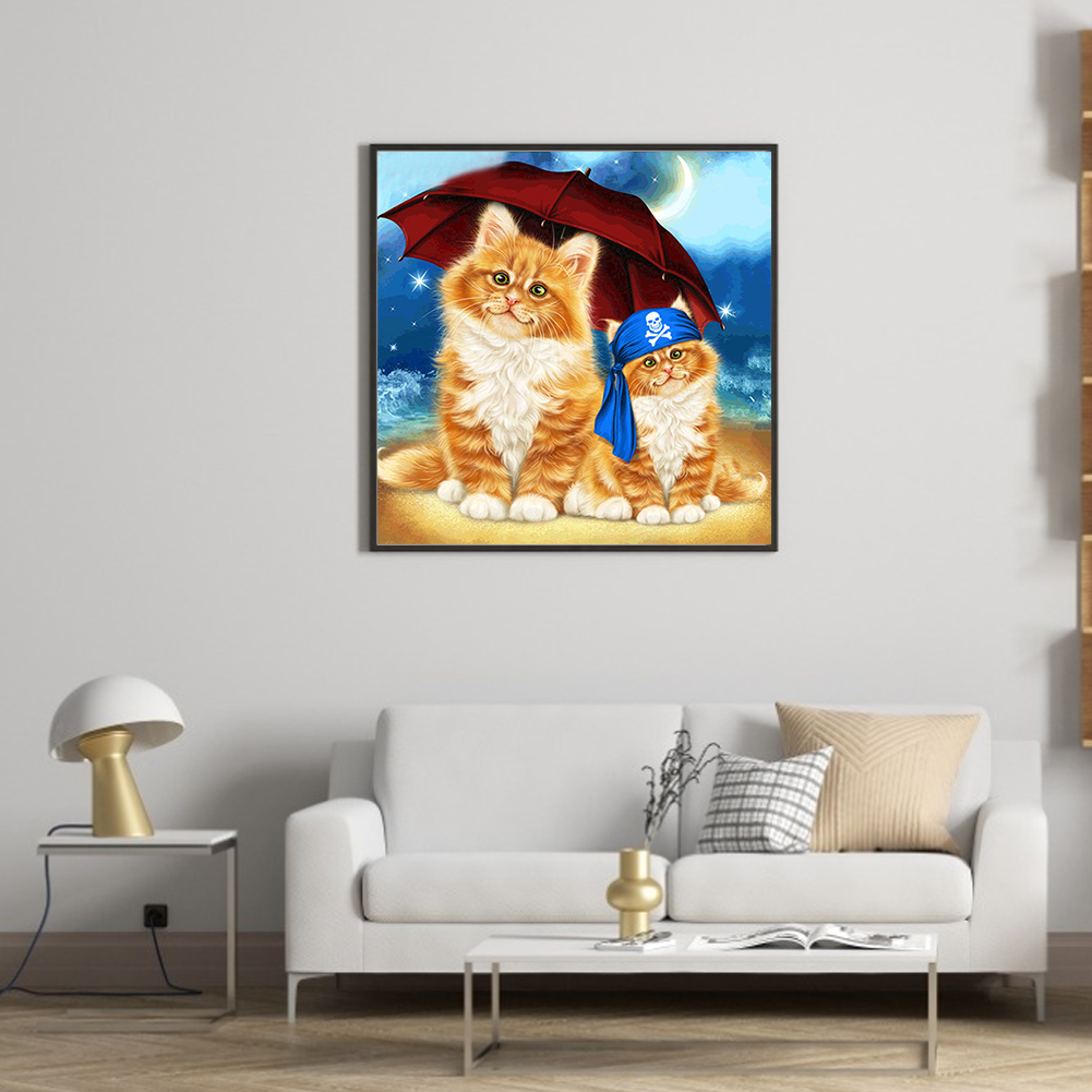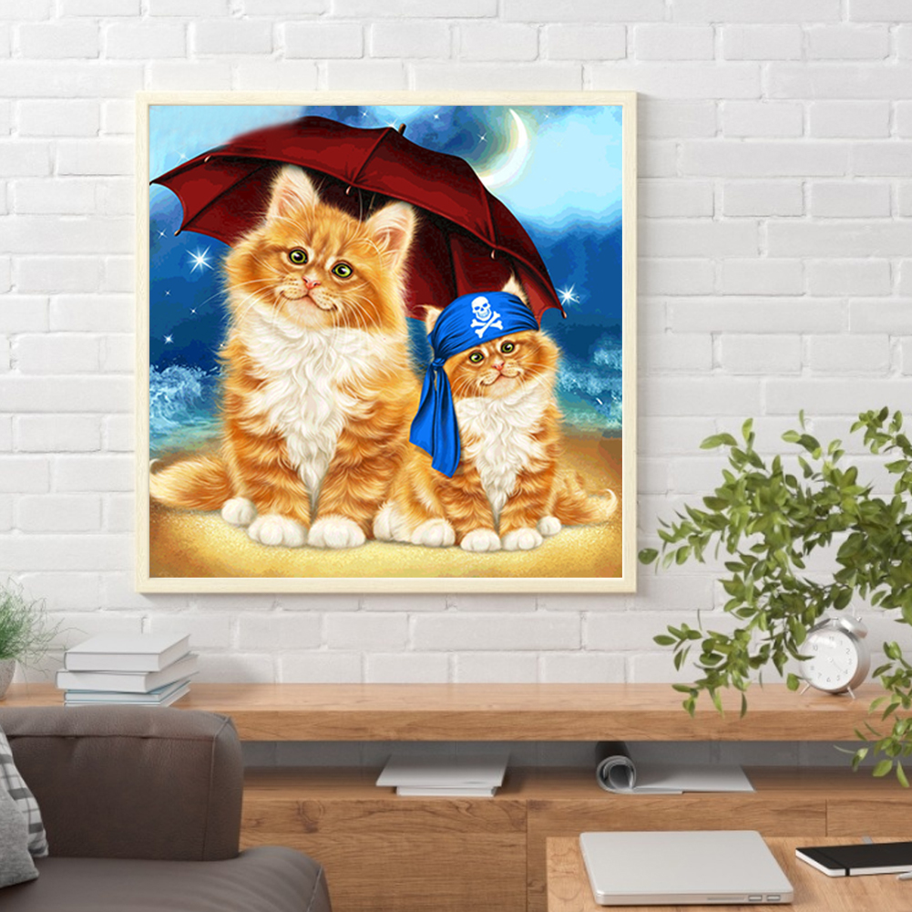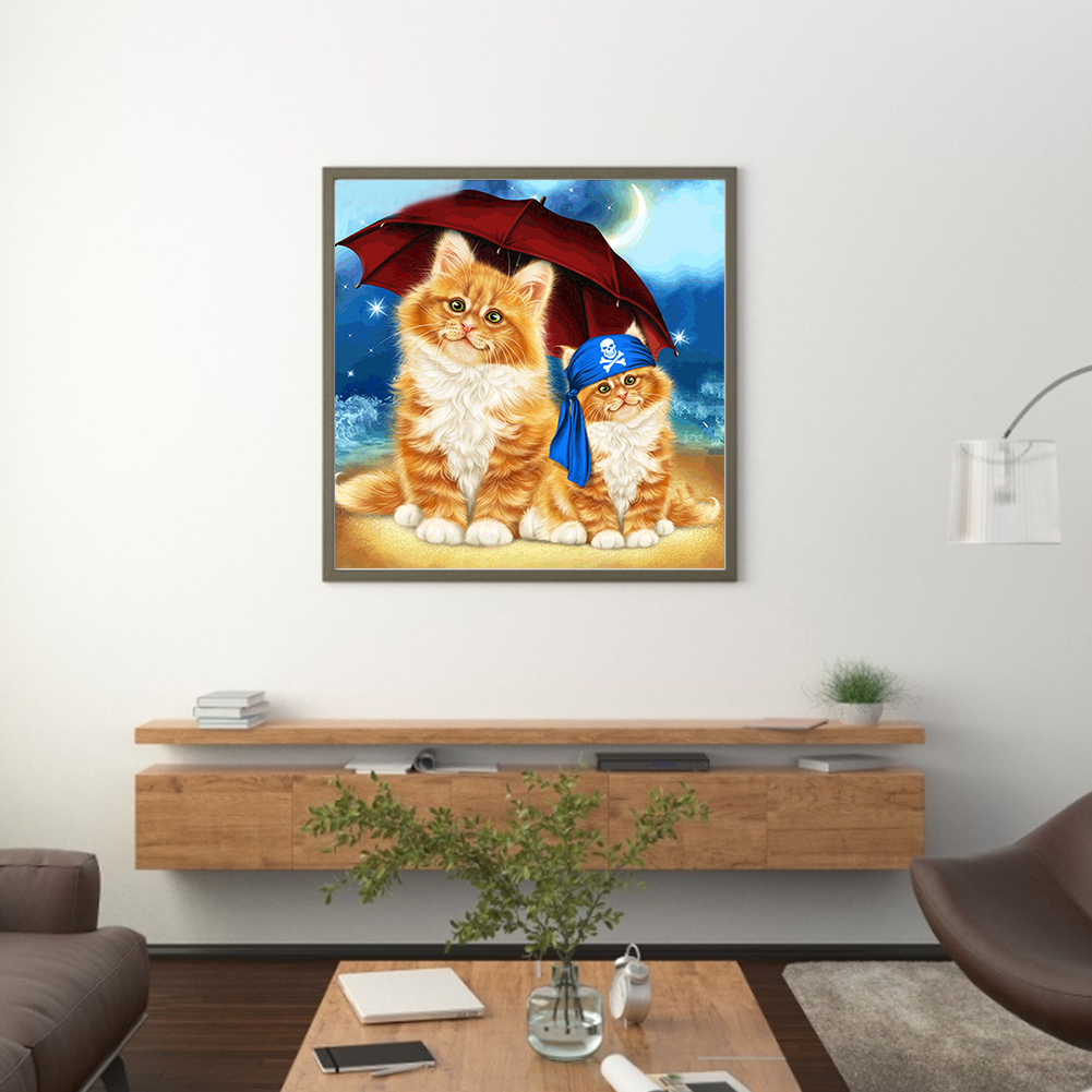 Sandy Beach Umbrella Cat 5D DIY Diamond Painting Kits Full Round Drill (B5426)