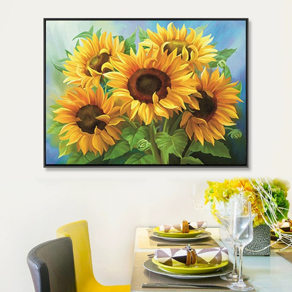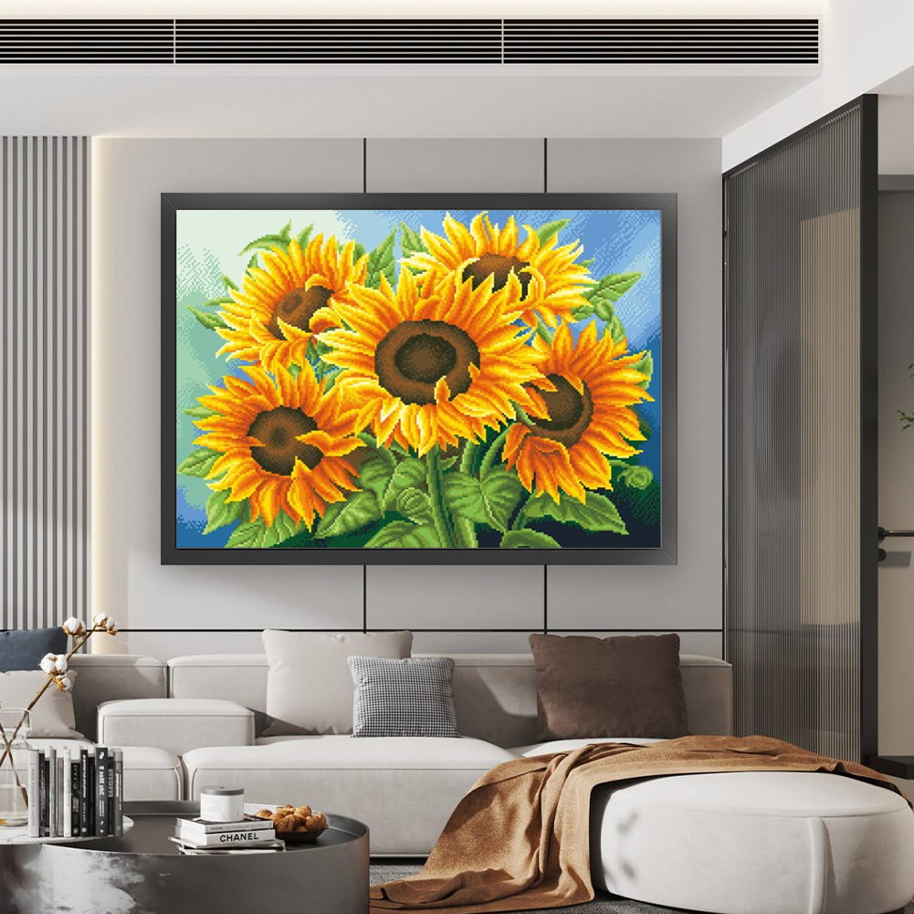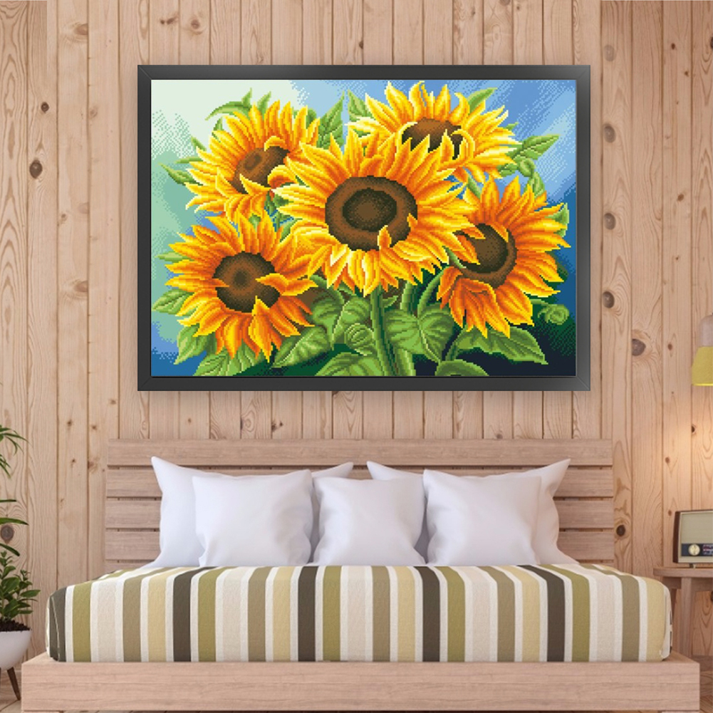 11CT Full Stamped Cross Stitch Bead Embroidery - Sunflower(Canvas|65*50CM)