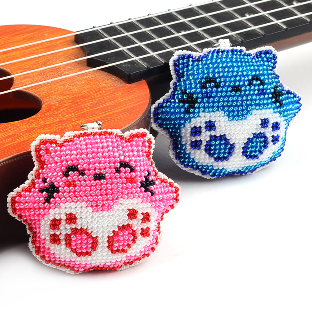 2Pcs Pink Blue Cat - Stamped Bead Embroidery - Keychain