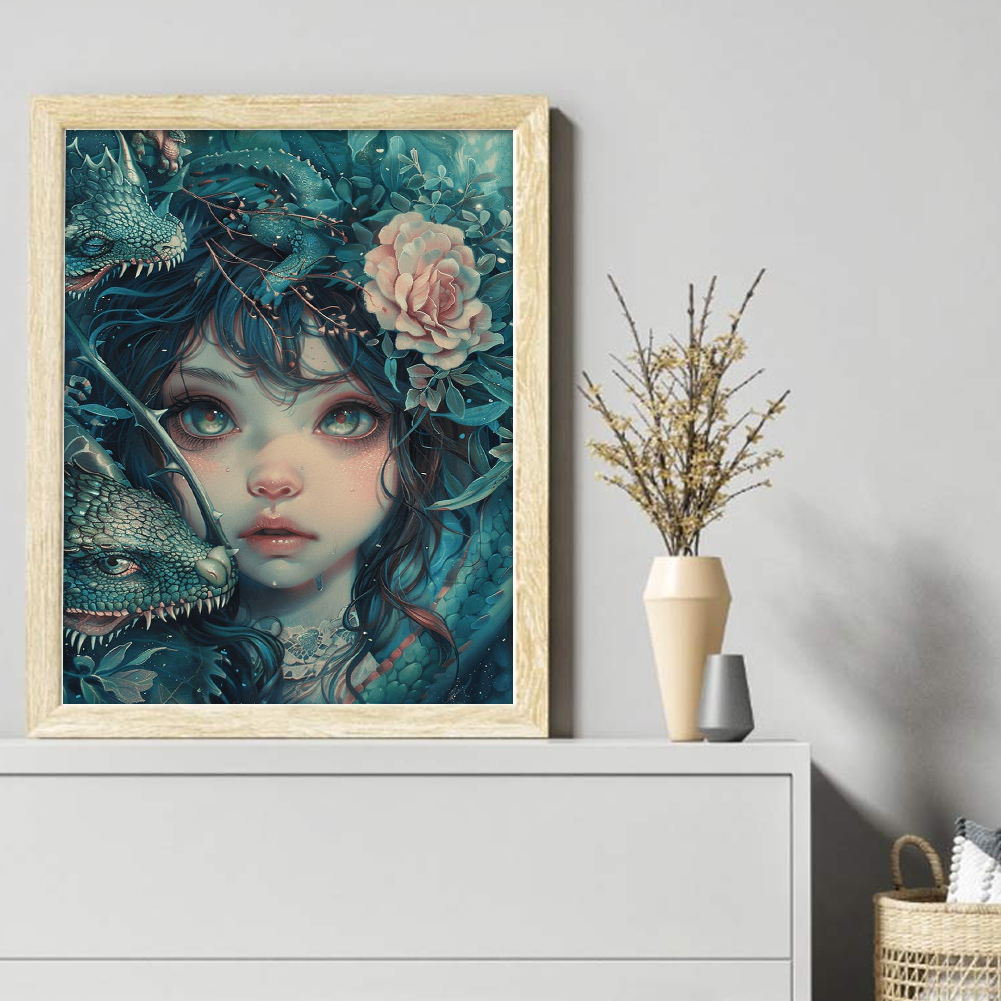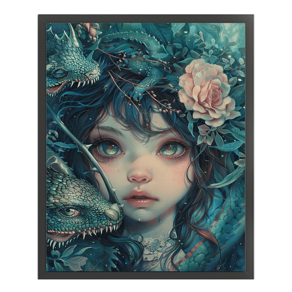 9CT Full Cross Stitch Bead Embroidery - Girl & Lizard(Canvas|40*50CM)
