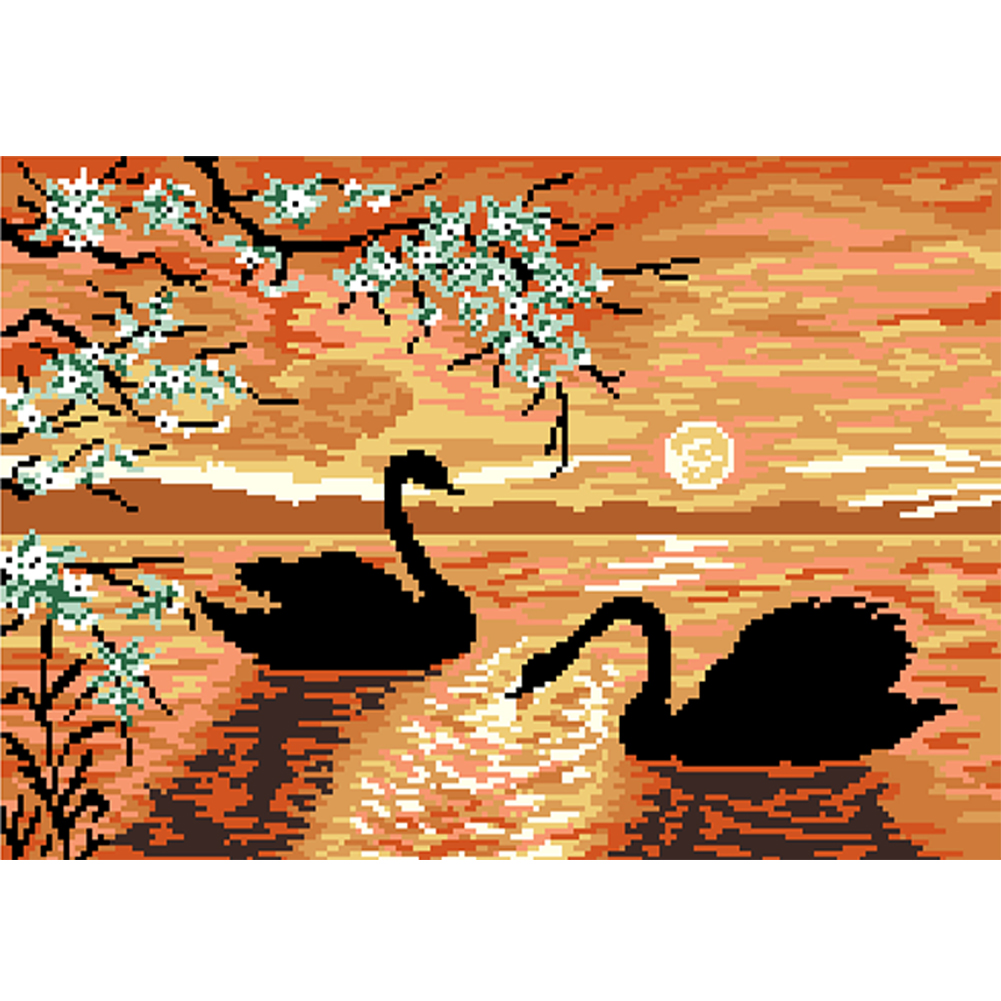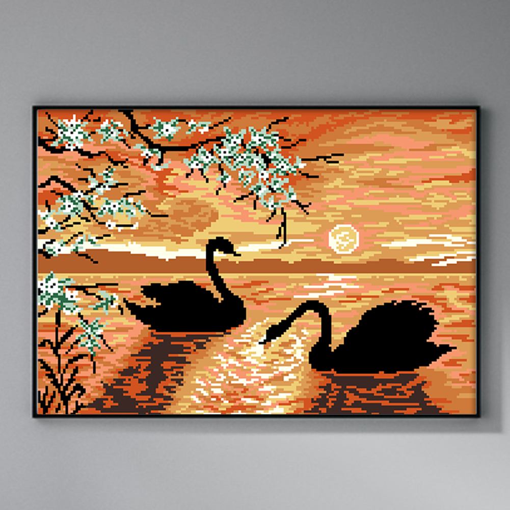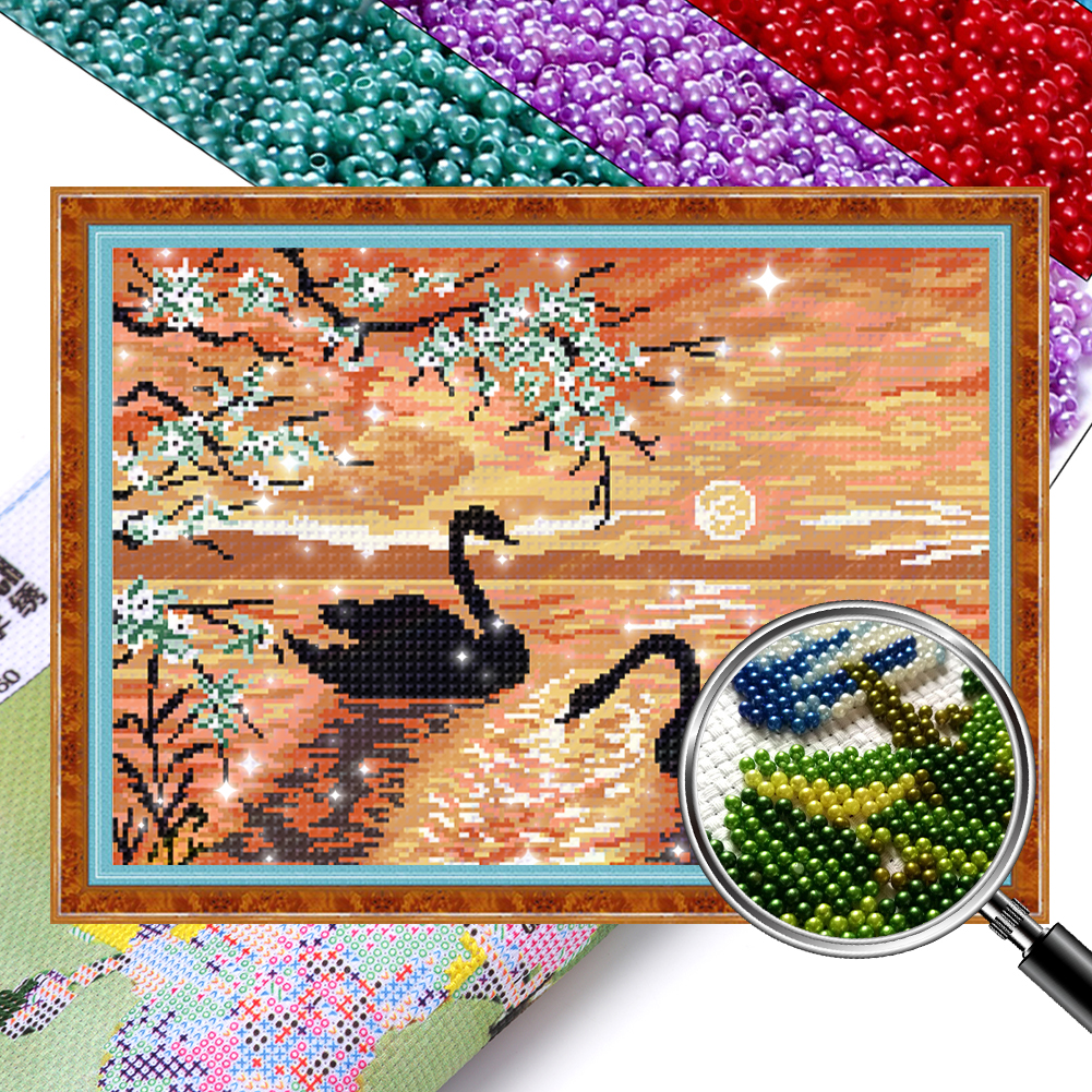 9CT Full Cross Stitch Bead Embroidery - Swan Lake(Canvas|50*36CM)