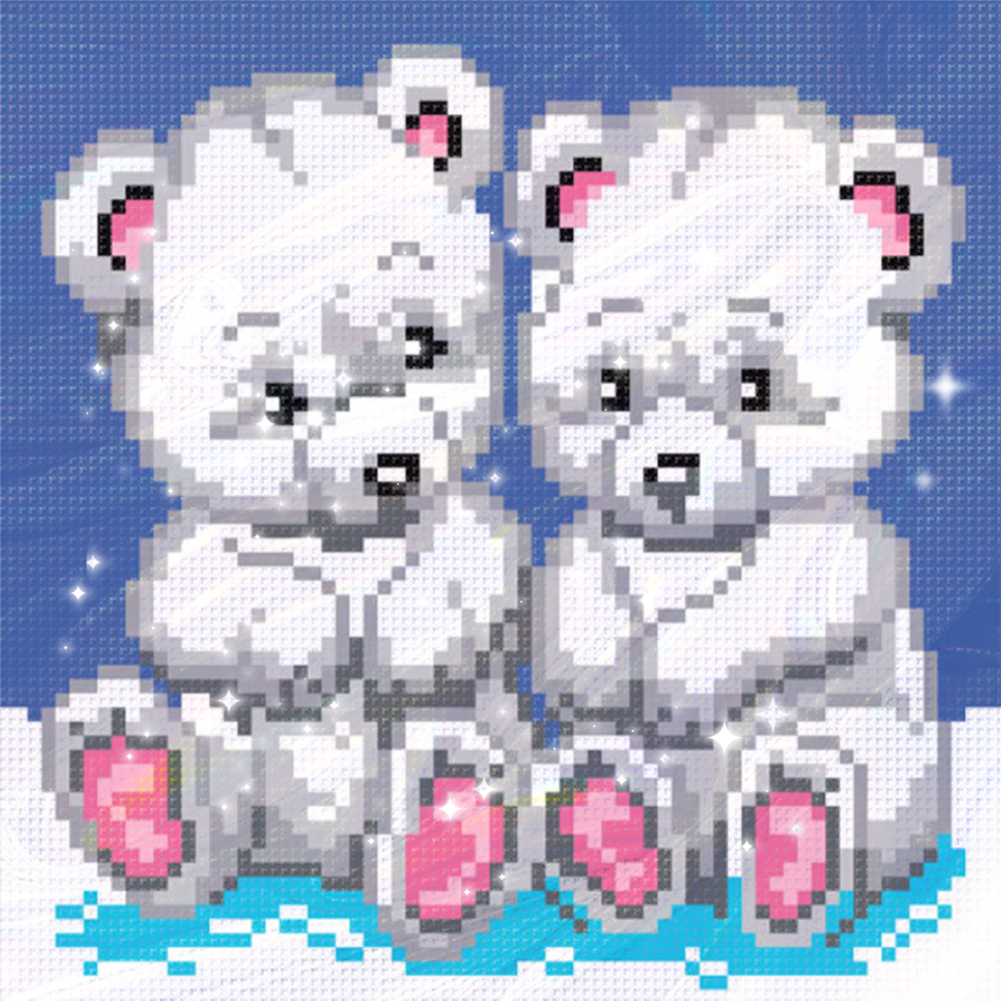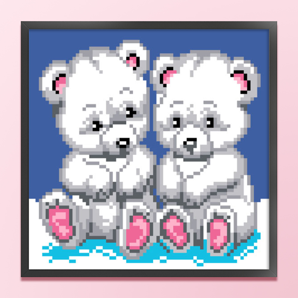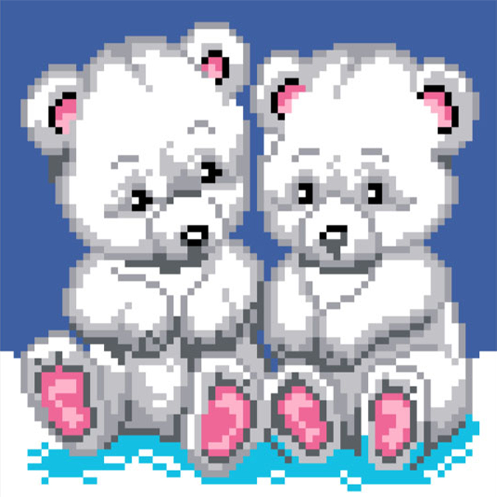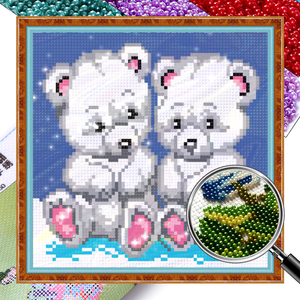 9CT Full Stamped Cross Stitch Bead Embroidery - Bears(Canvas|20*20CM)
