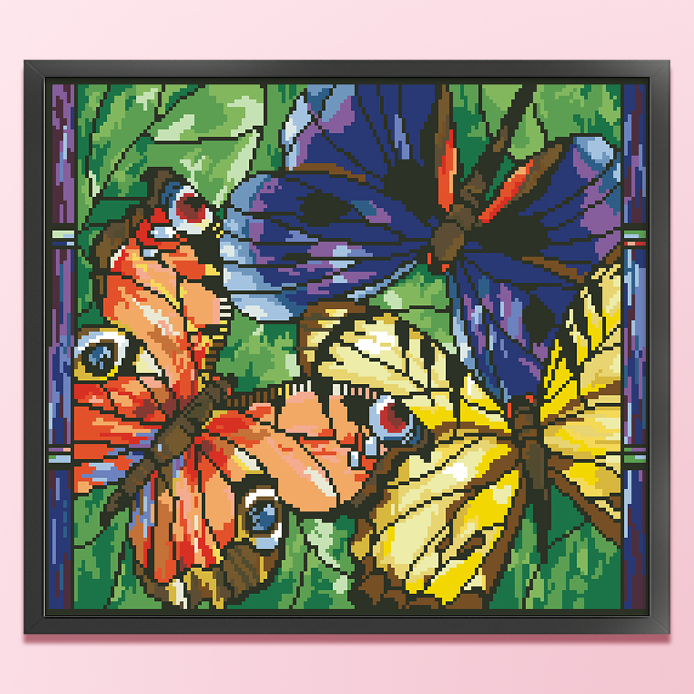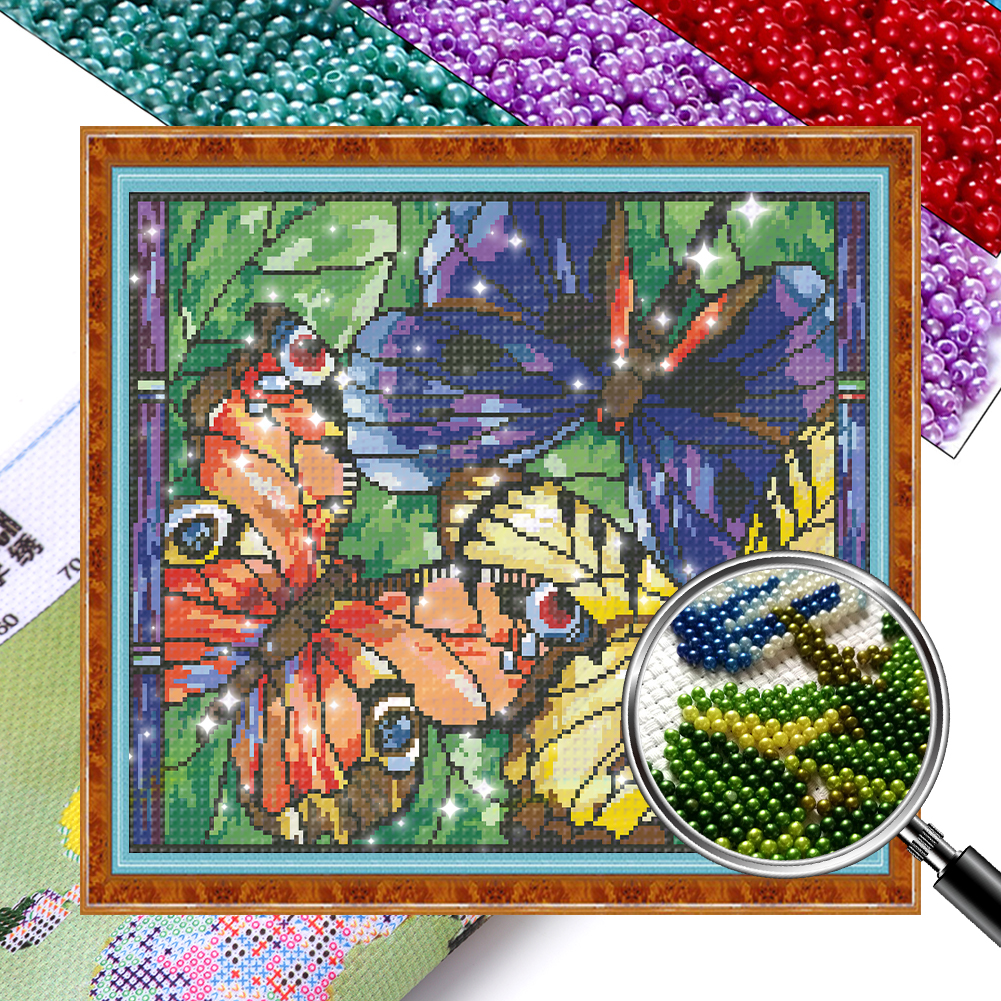 9CT Full Stamped Cross Stitch Bead Embroidery- Butterfly(Canvas|46*40CM)