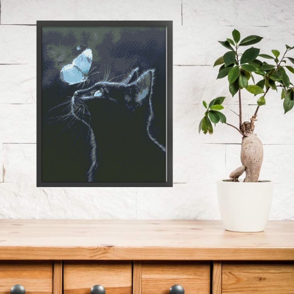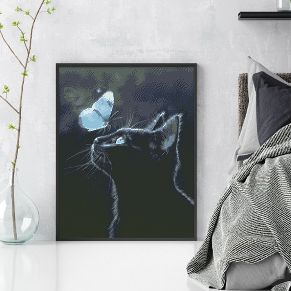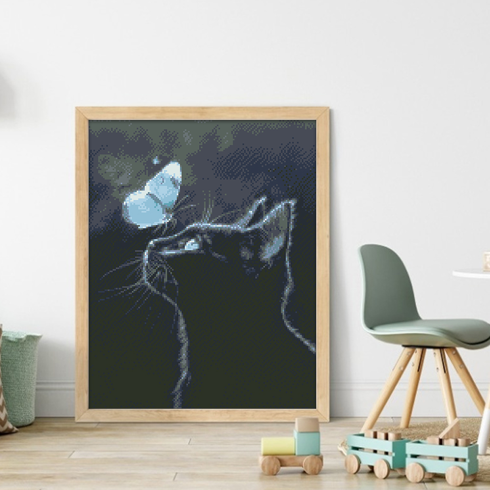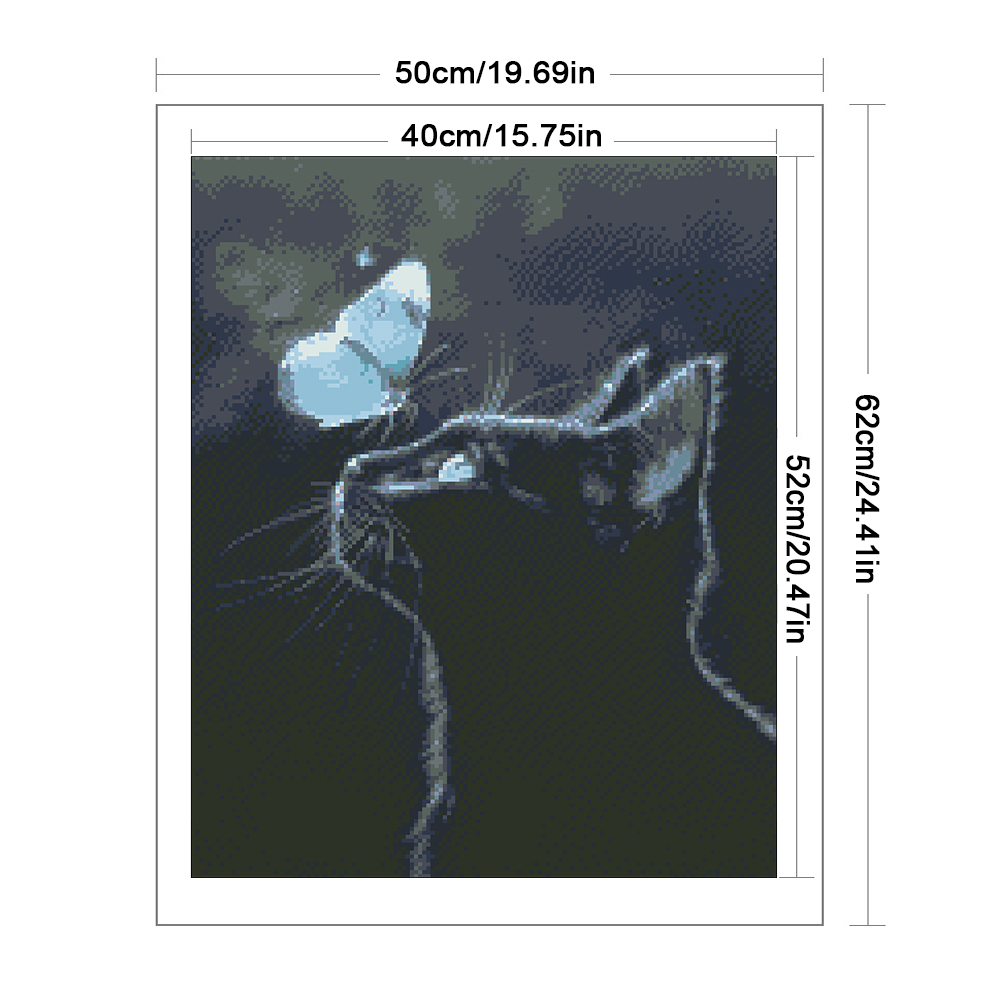 9CT Full Stamped Cross Stitch Bead Embroidery- Cat Butterfly(Canvas|40*52CM)