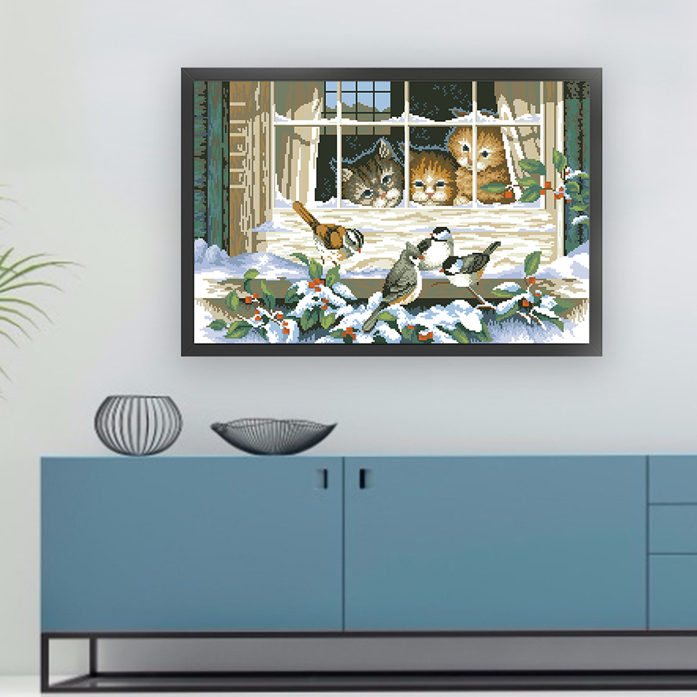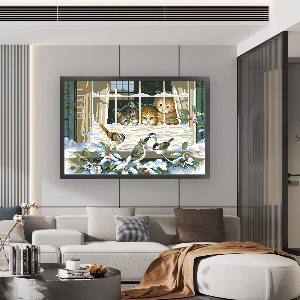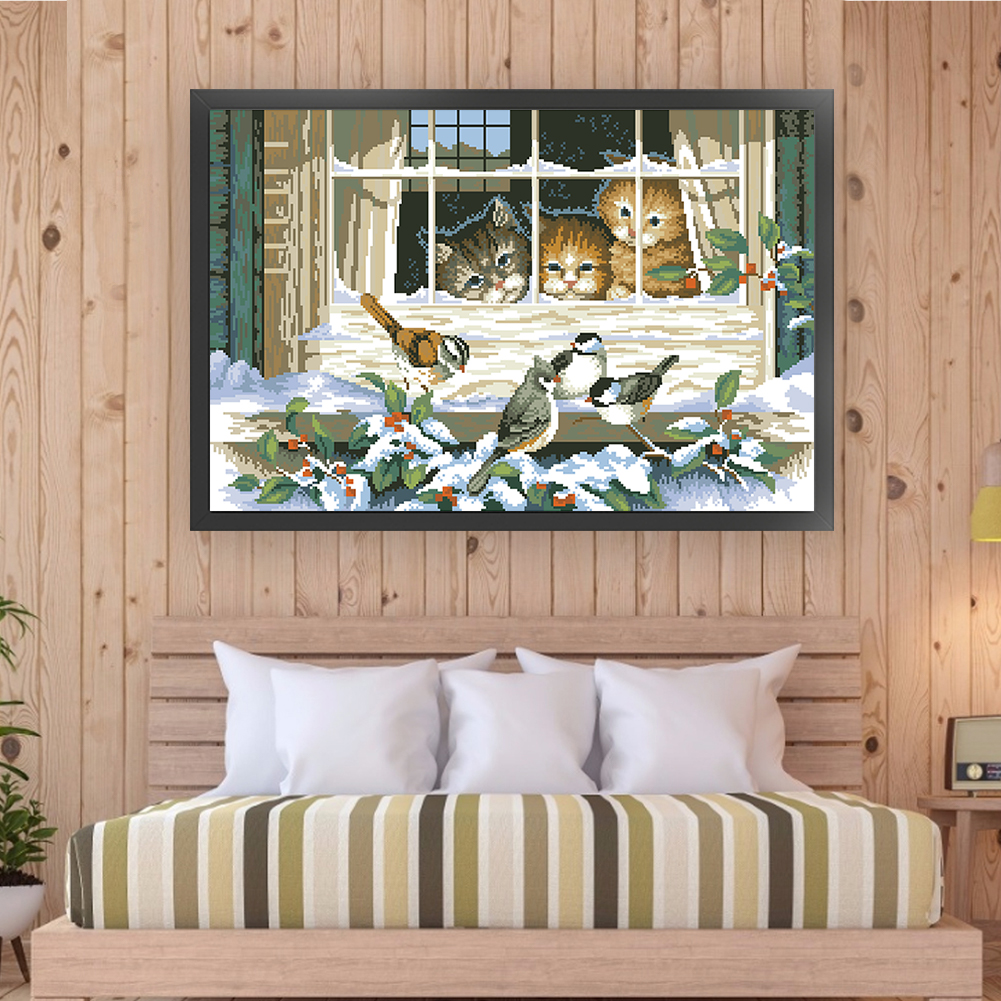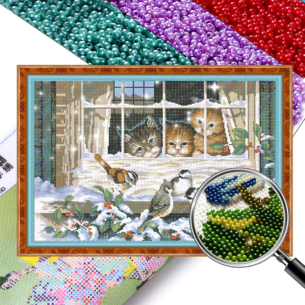 9CT Full Stamped Cross Stitch Bead Embroidery- Cat(Canvas|71*46CM)