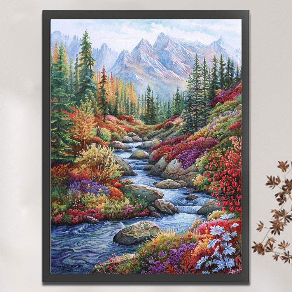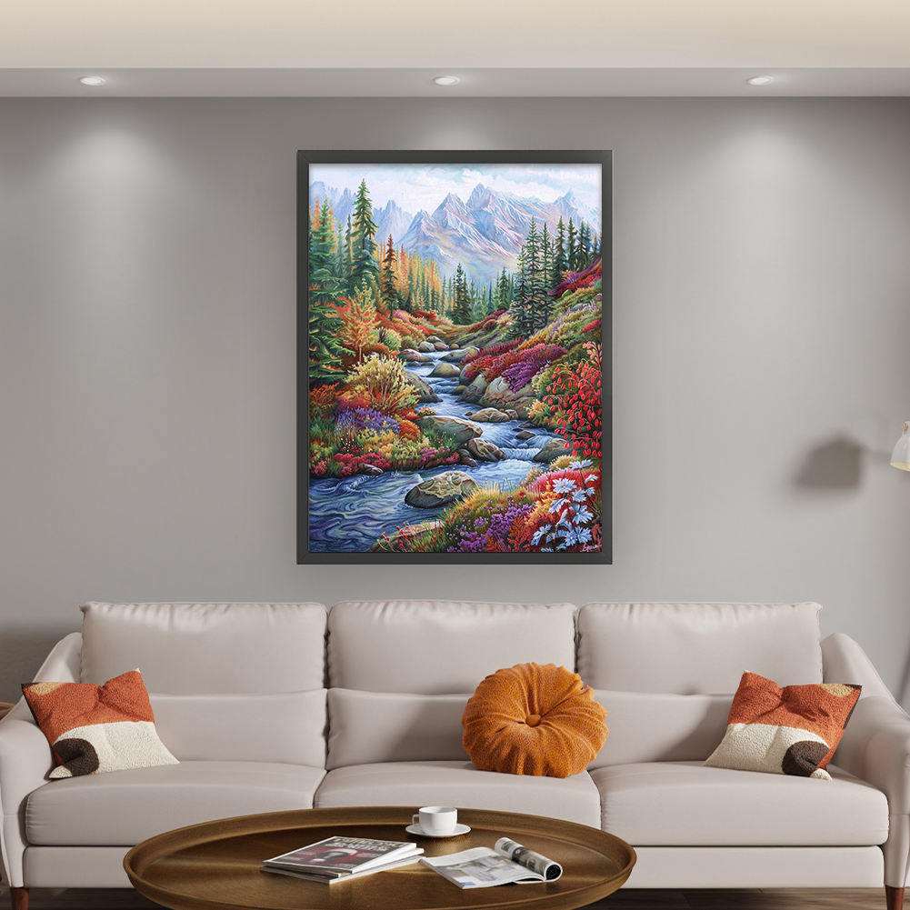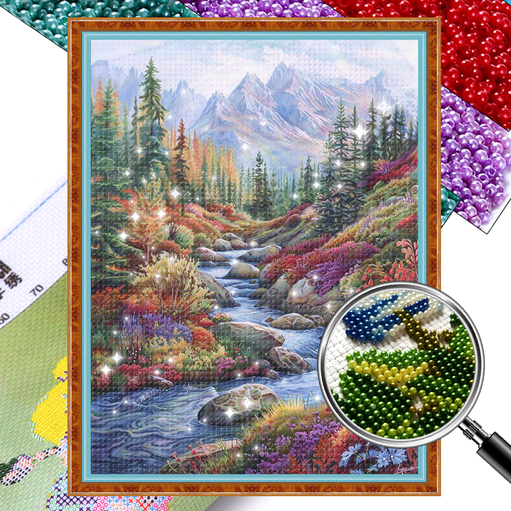 9CT Full Stamped Cross Stitch Bead Embroidery- Creek(Canvas|51*69CM)
