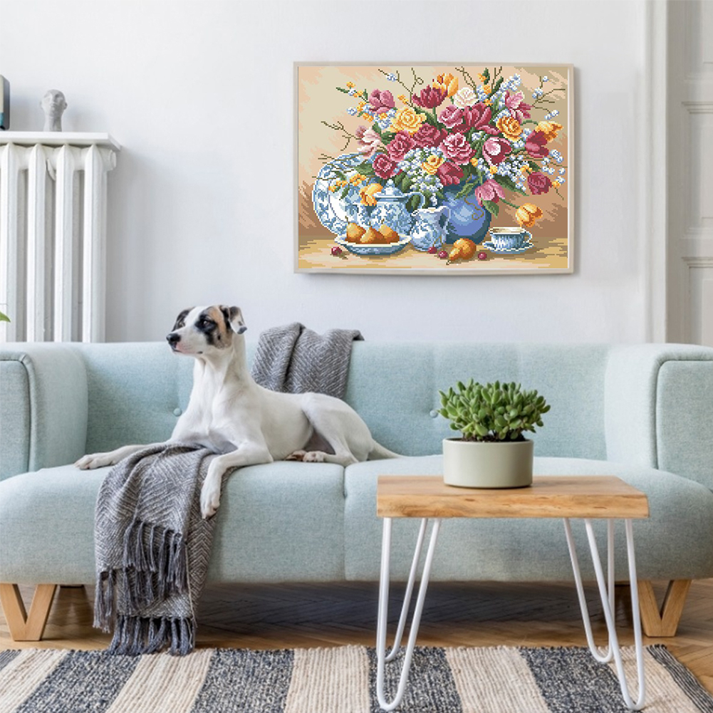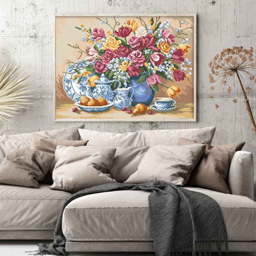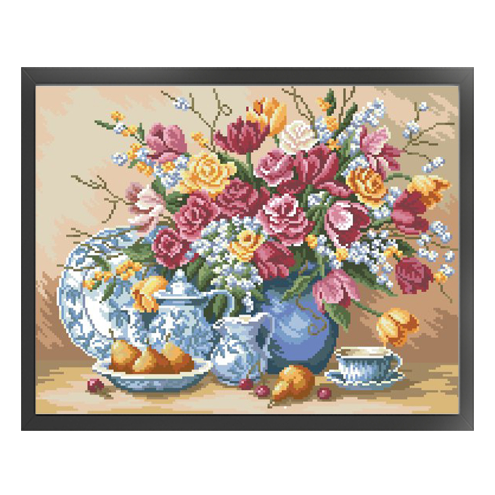 9CT Full Stamped Cross Stitch Bead Embroidery- Flower(Canvas|51*40CM)