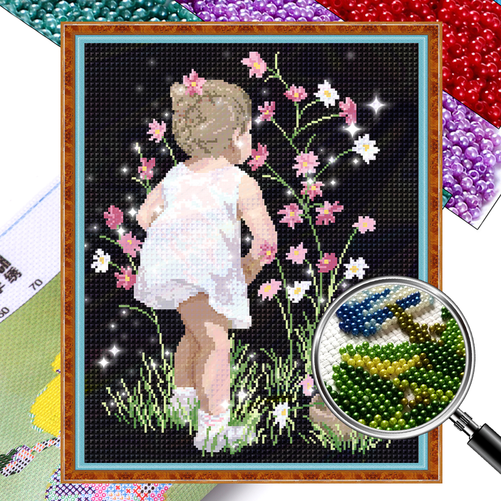 9CT Full Stamped Cross Stitch Bead Embroidery- Girl(Canvas|40*54CM)