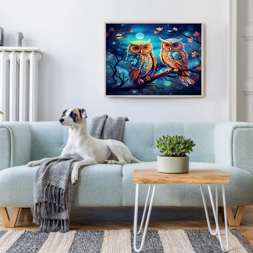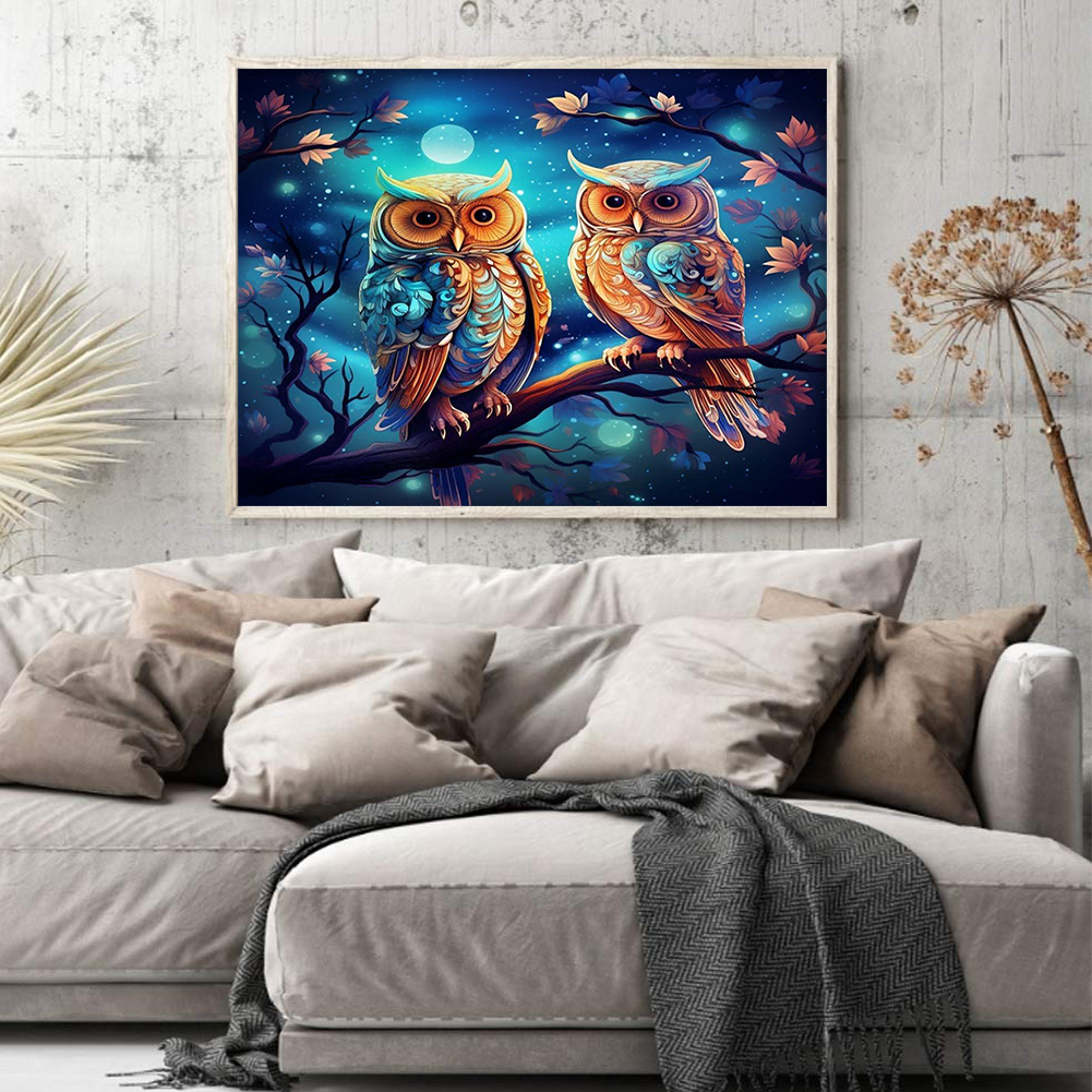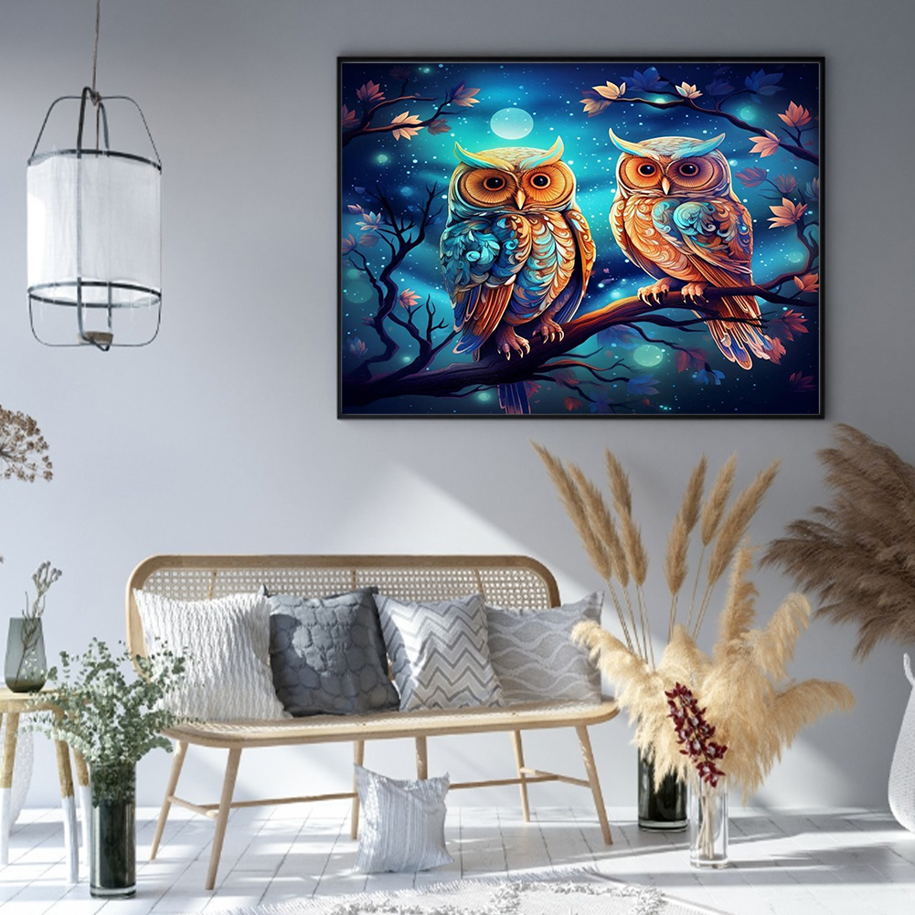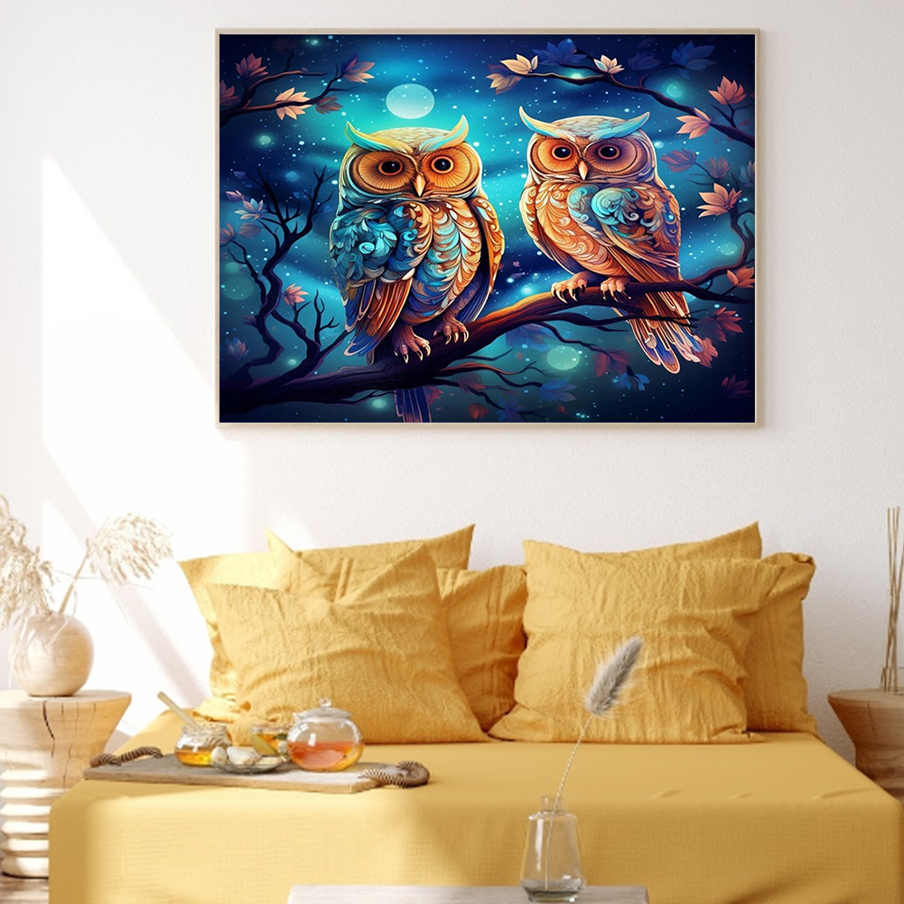 9CT Full Stamped Cross Stitch Bead Embroidery- Owls(Canvas|52*40CM)