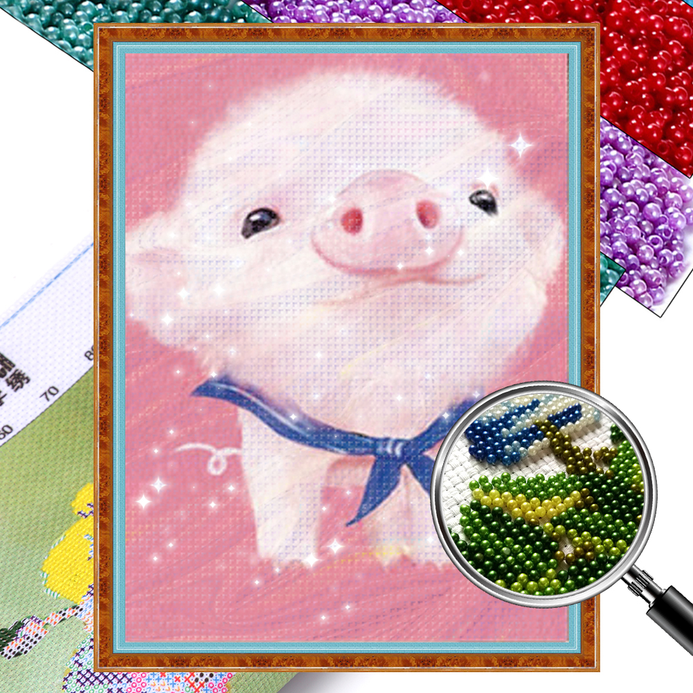 9CT Full Stamped Cross Stitch Bead Embroidery - Pig(Canvas|20*28CM)