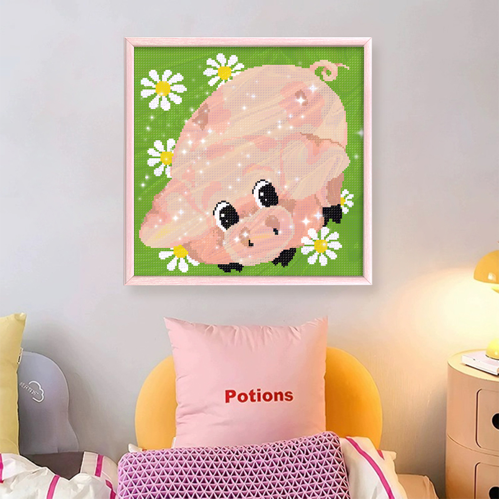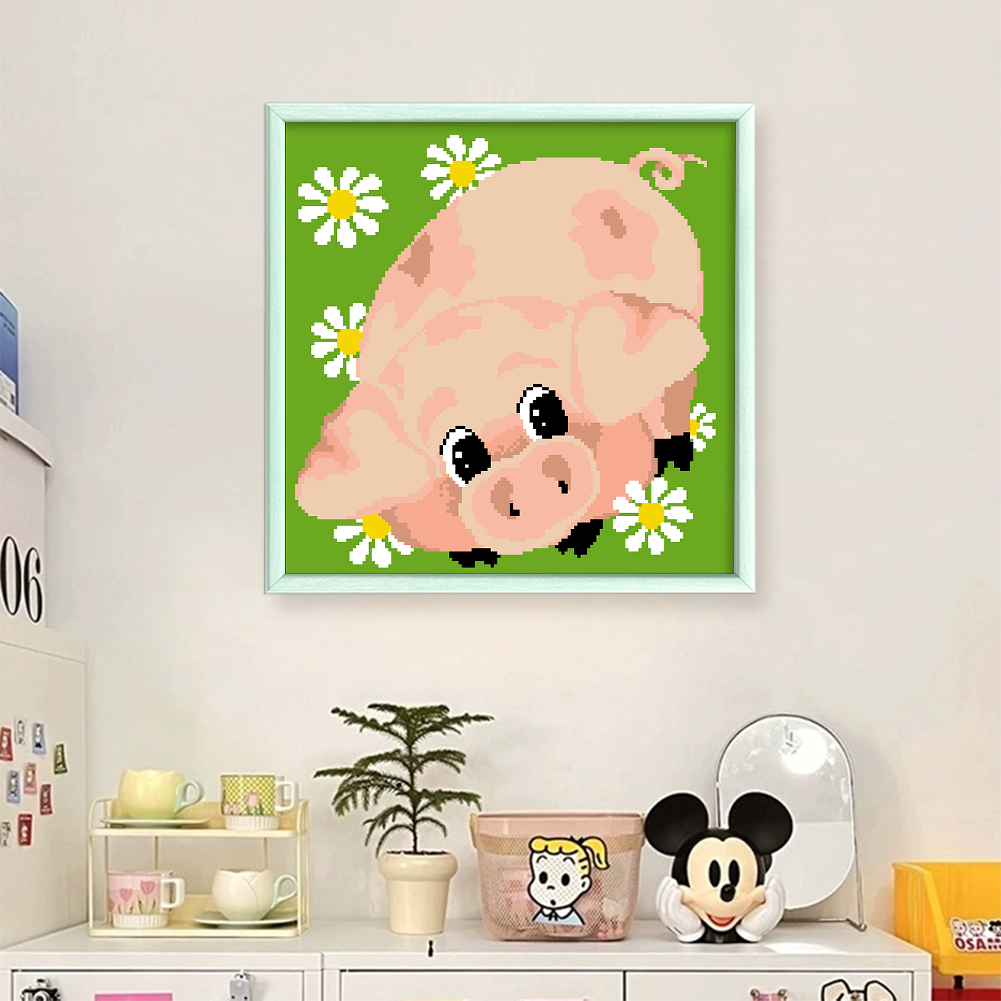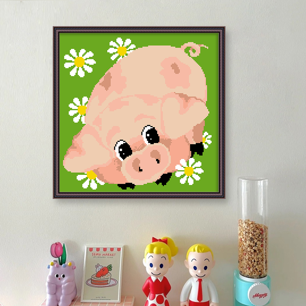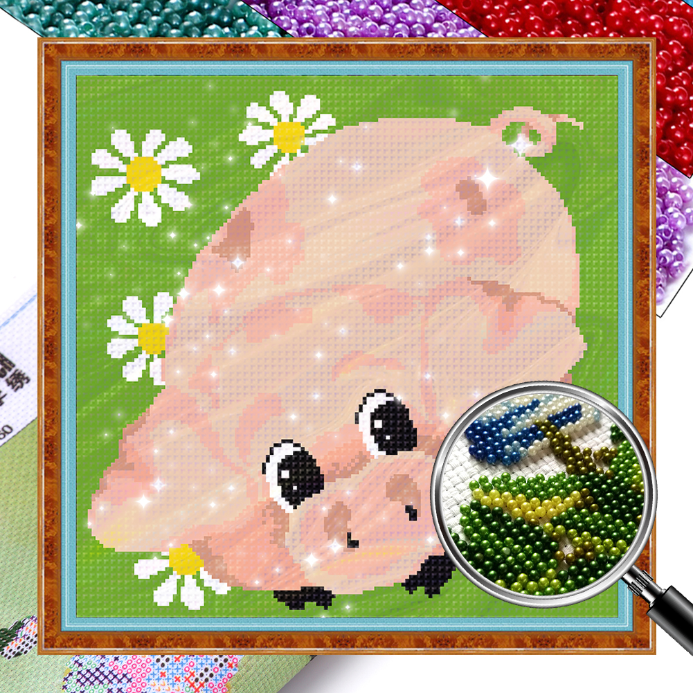 9CT Full Stamped Cross Stitch Bead Embroidery - Pig(Canvas|39*39CM)