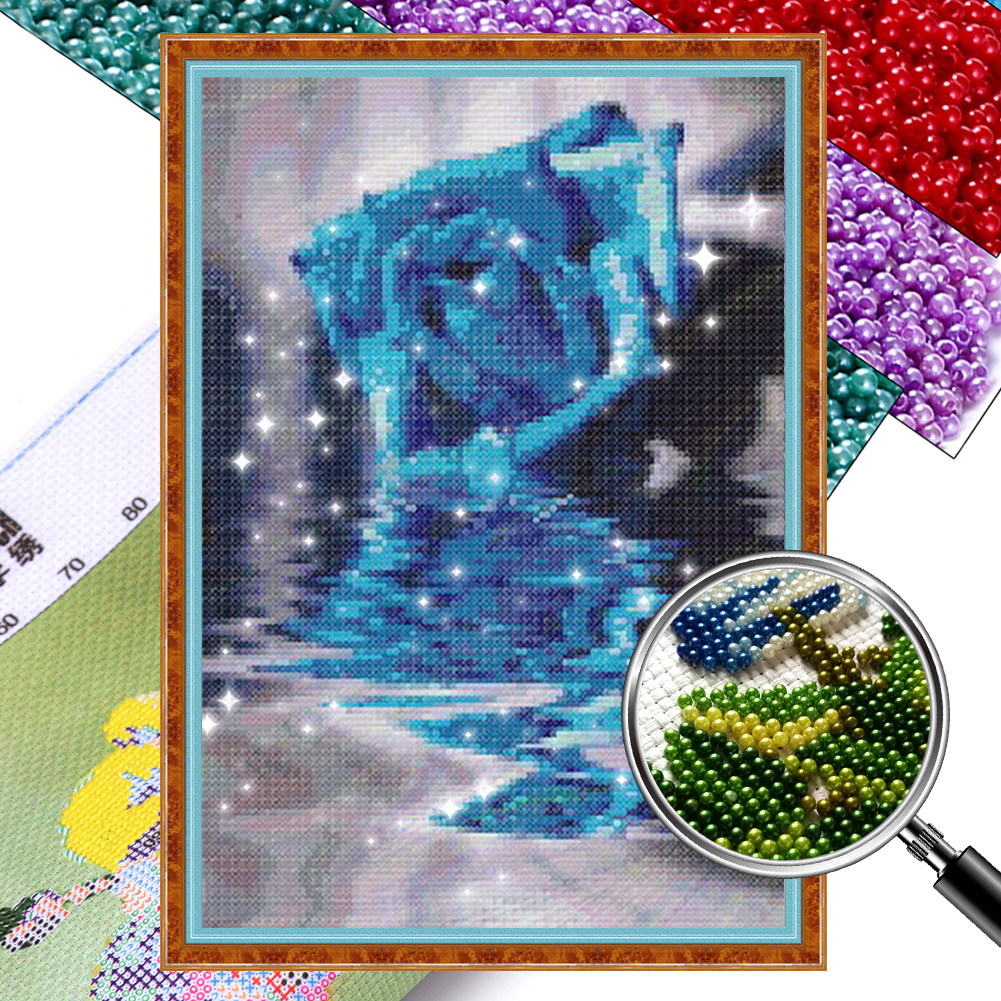9CT Full Stamped Cross Stitch Bead Embroidery- Rose(Canvas|30*42CM)