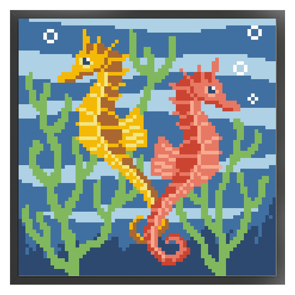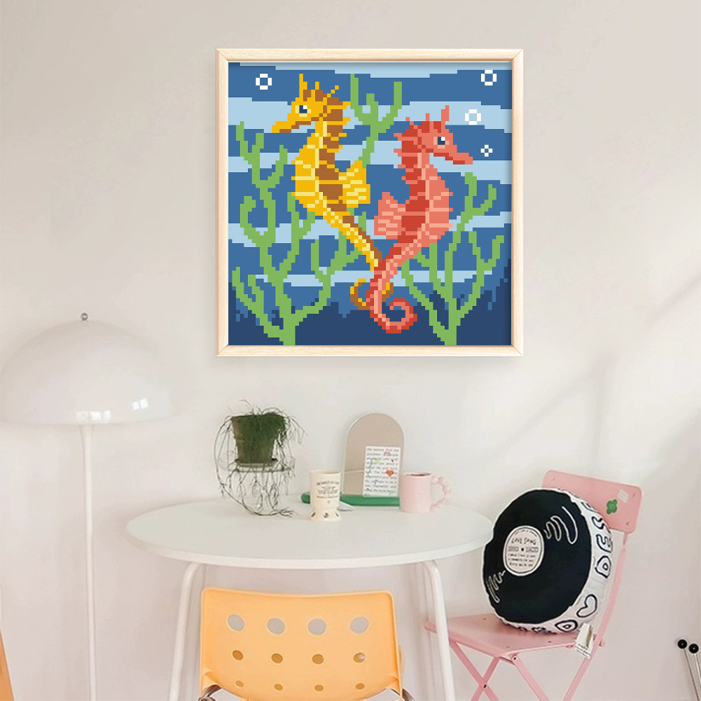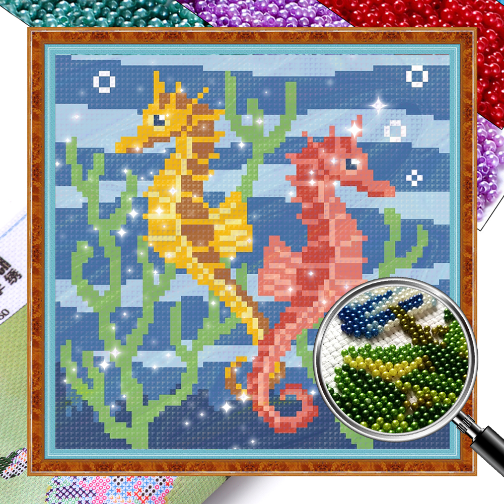 9CT Full Stamped Cross Stitch Bead Embroidery - Seahorse(Canvas|20*20CM)