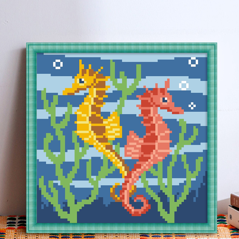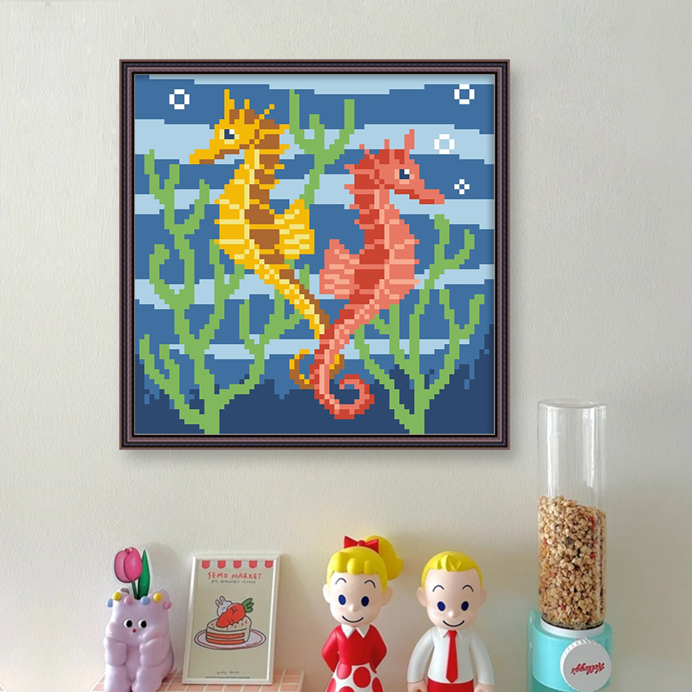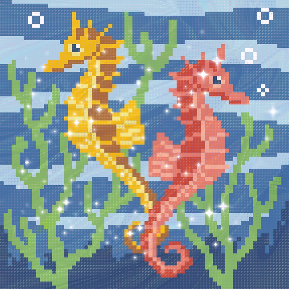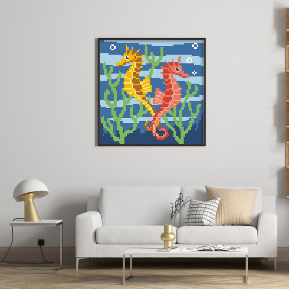 9CT Full Stamped Cross Stitch Bead Embroidery - Seahorse(Canvas|20*20CM)